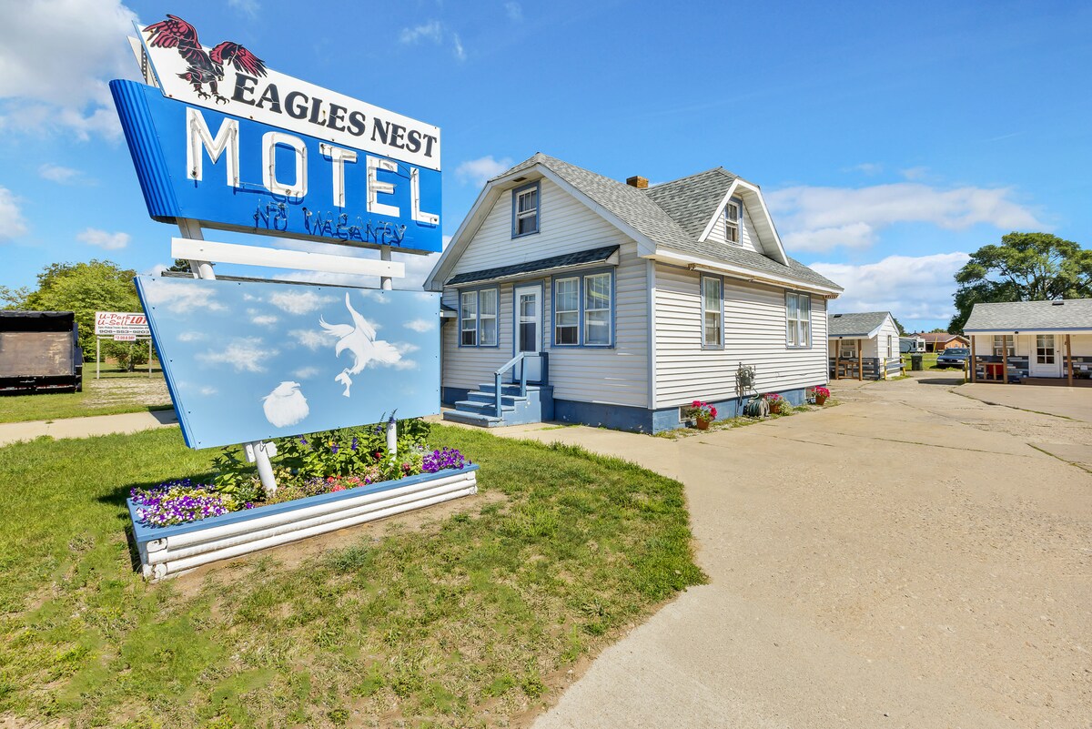 Eagles Nest Motel is the ideal choice for travelers in Escanaba! We are centrally located off of Highway 41. Minutes away from Ludington Street,shops and all the best restaurants. We are only a 2 minute drive from Midwest Truck Driving School, students are welcome to stay! This unit consists of a full kitchen and private bathroom,with a stand-up shower,queen bed and one sleeper sofa. We are an ideal resting spot,as we offer a convenient and clean resting place. We hope to welcome you to the UP!
