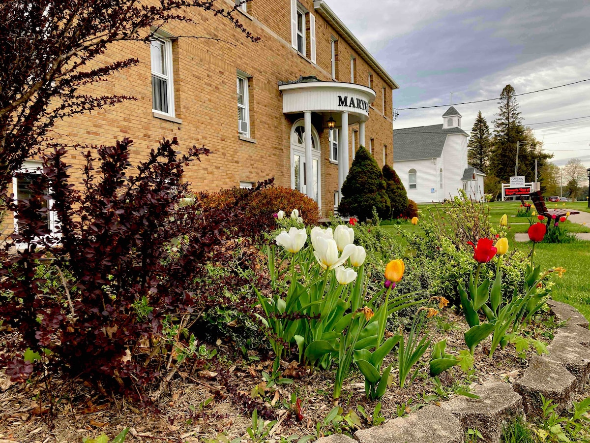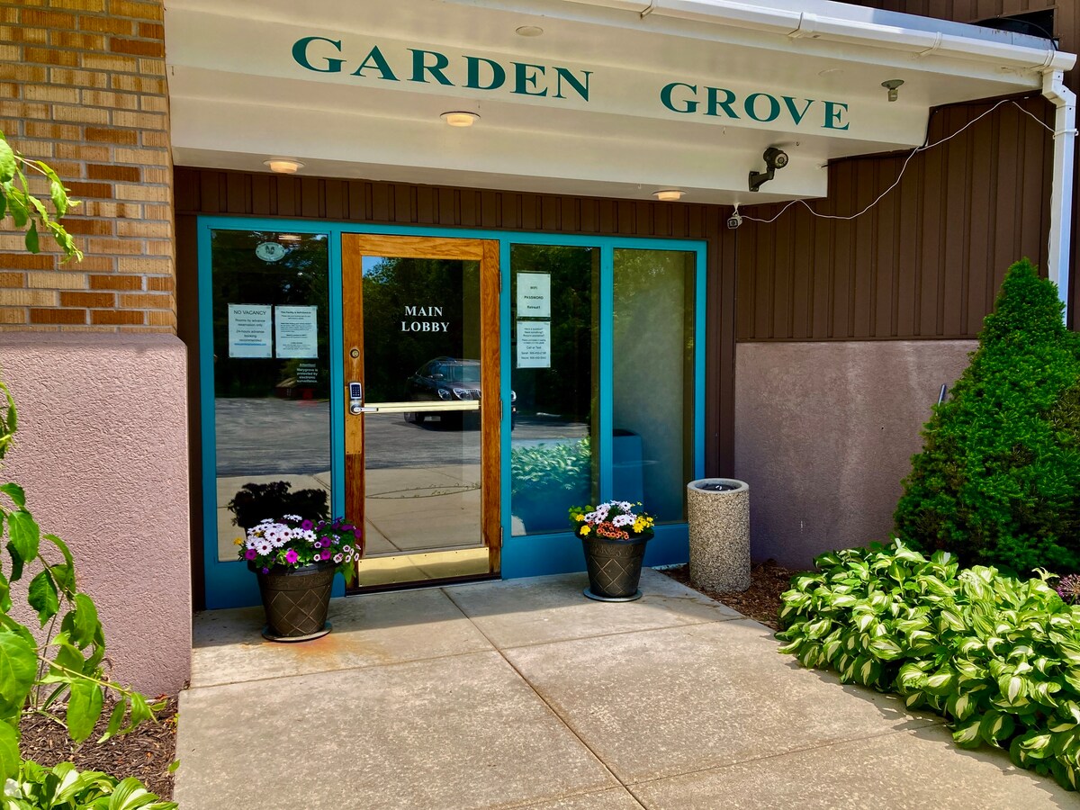The best place to stay on the Garden Peninsula! Garden Grove Retreat & Lodging, a historic bed & breakfast, and once a Catholic retreat center, is located in the quaint Village of Garden. Enjoy 40 acres of beautiful grounds and cedar forest, a relaxing respite from the stresses of life, a place where you can enjoy the quiet countryside, hiking on-property, and nearby access to Lake Michigan, Garden Bay, and Big Bay de Noc. 1 hour to Pictured Rocks National Lakeshore. Coffee shop. Self-check-in.