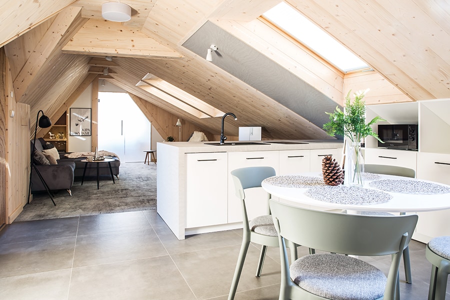 A modern, carefully renovated wooden cottage on the edge of the village offers a peaceful setting with views of the Low, High and Western Tatras. The original wooden house has been sensitively extended and fitted with modern amenities, combining traditional rural charm with comfort. The cottage comfortably accommodates five guests in proper beds. It’s an ideal choice for a holiday full of hiking, skiing, or relaxing in thermal waters, all within a 30-minute drive.