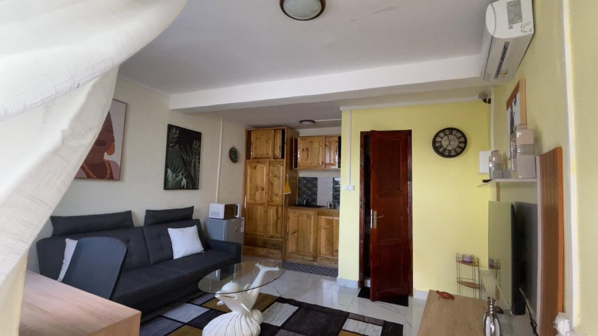 Studio neuve, et élégant au centre de sada. canapé angle convertible en lit, décoration soigné. matelas disponible (si le canapé ne convient pas). A 2 min à pied des commerces, banque et la plage de sada idéal pour admirer le soleil couchant derrière son îlot en forme de tortue. Les plages du sud (tahiti plage-5min) (mzouzia, 3baobab,-20min) (Ngouja 25min) en voiture. ou plutôt randonneur le Mont Bénara à 10min, Mont Choungui 25min en voiture. INTERDICTION DE FUMER dans le logement svp.