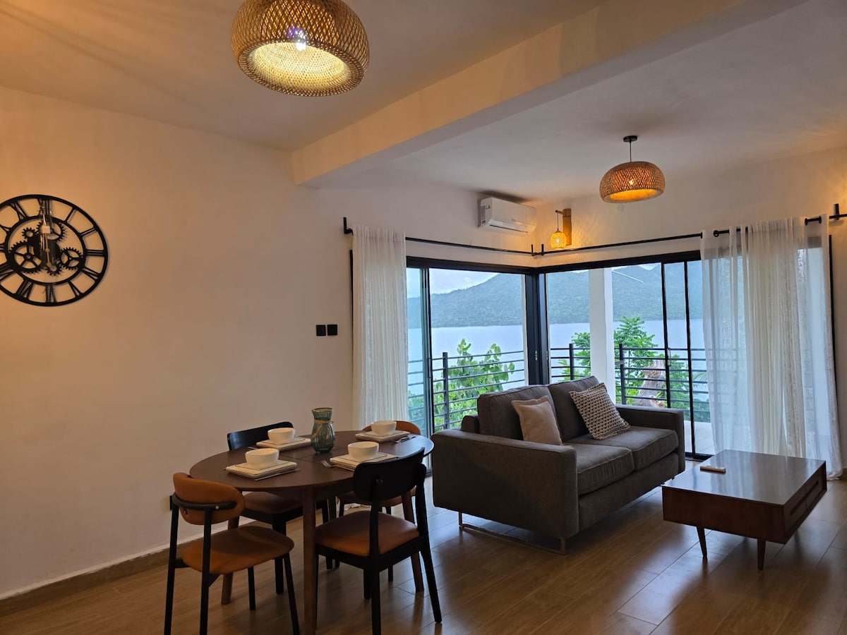 Détendez-vous dans ce bel appartement calme et spacieux, avec vue imprenable sur le lagon. Idéal pour une escapade romantique ou séjour en famille, ce logement allie confort et élégance. Le logement est neuf, entièrement équipé avec une cuisine moderne, un salon ouvert sur la mer et une chambre confortable. Profitez de la climatisation dans toutes les pièces, du Wi-Fi et d'une télévision connectée. Relaxez-vous sur la terrasse en savourant un café, tout en appréciant les bruits des vagues.