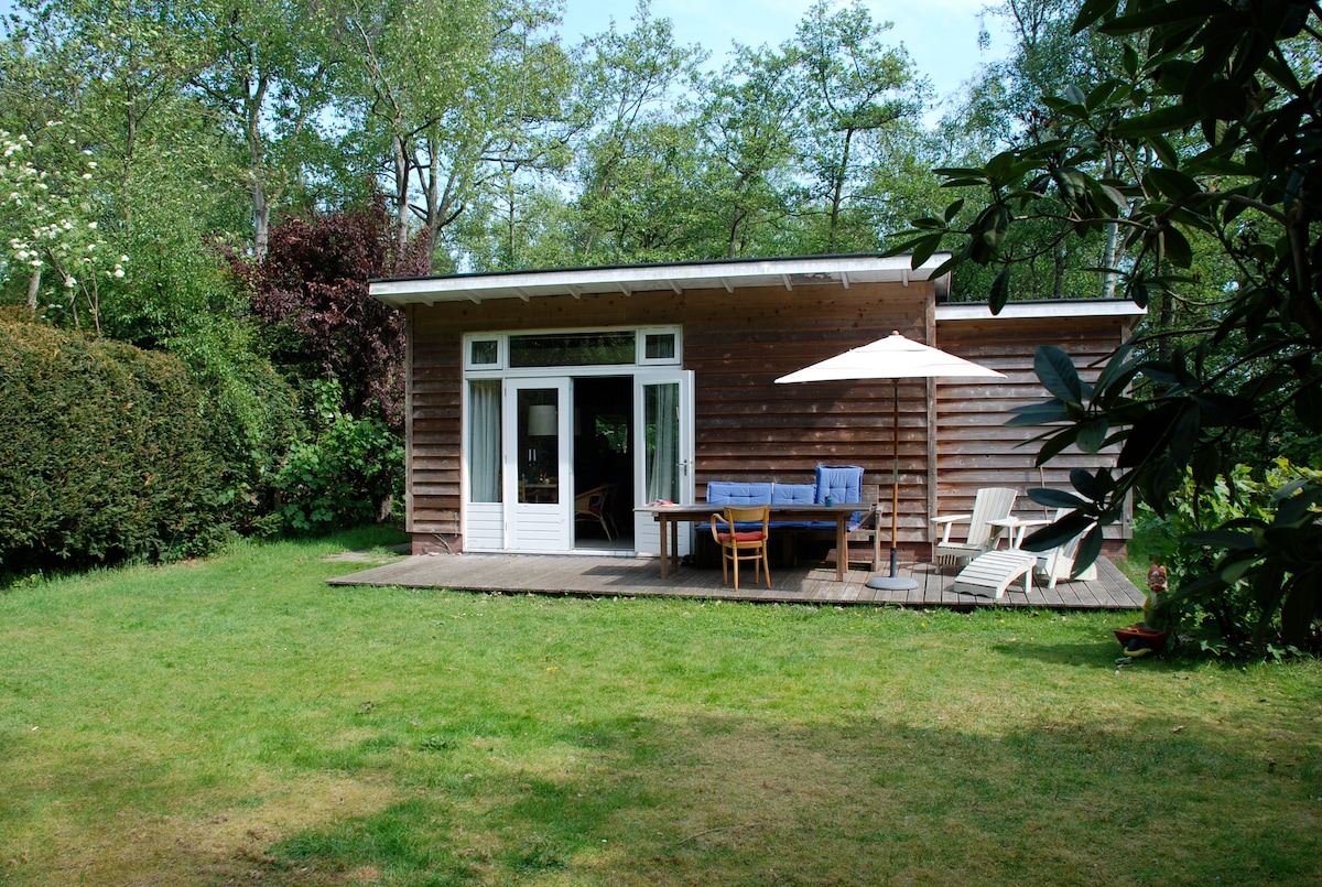带养生花园的森林附近的度假屋