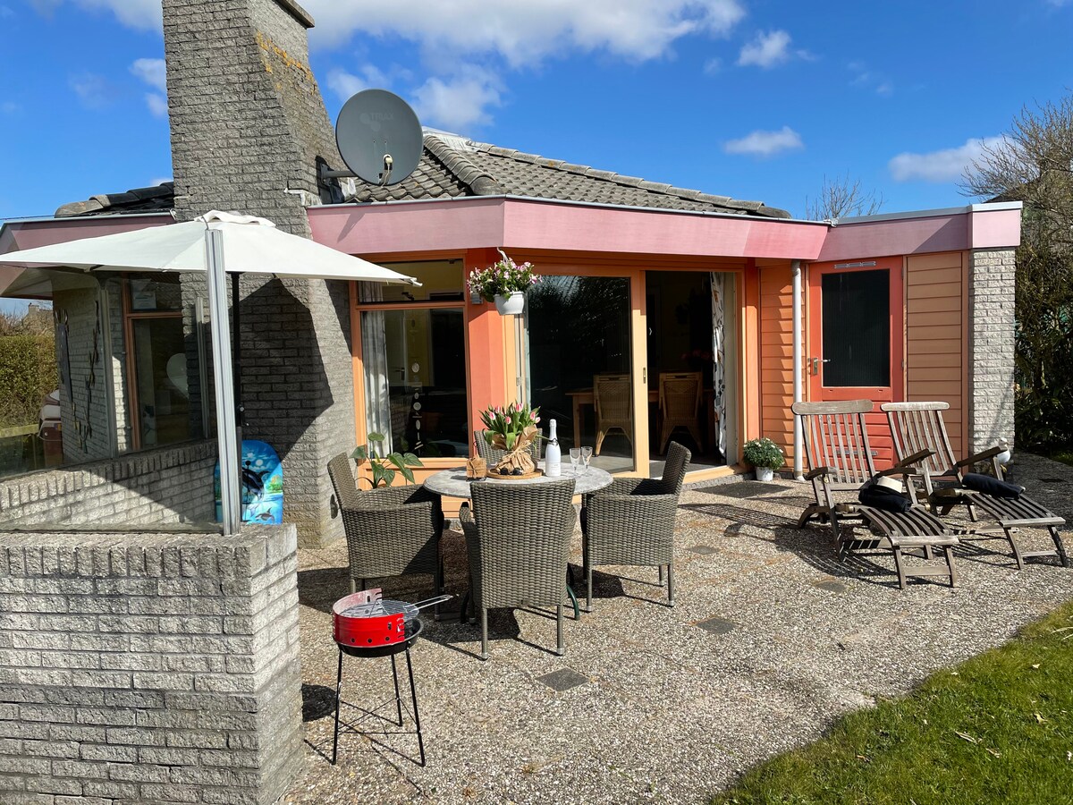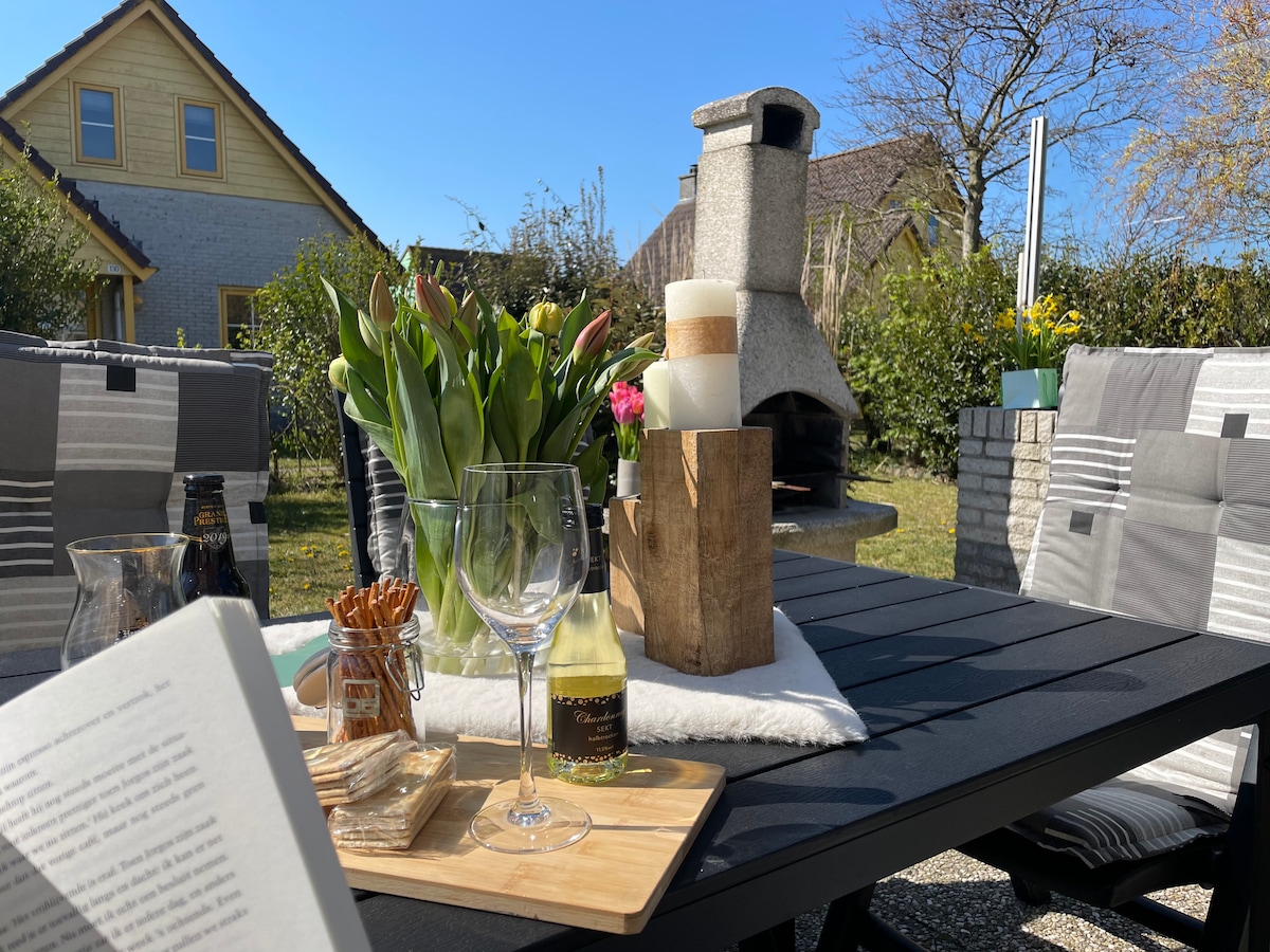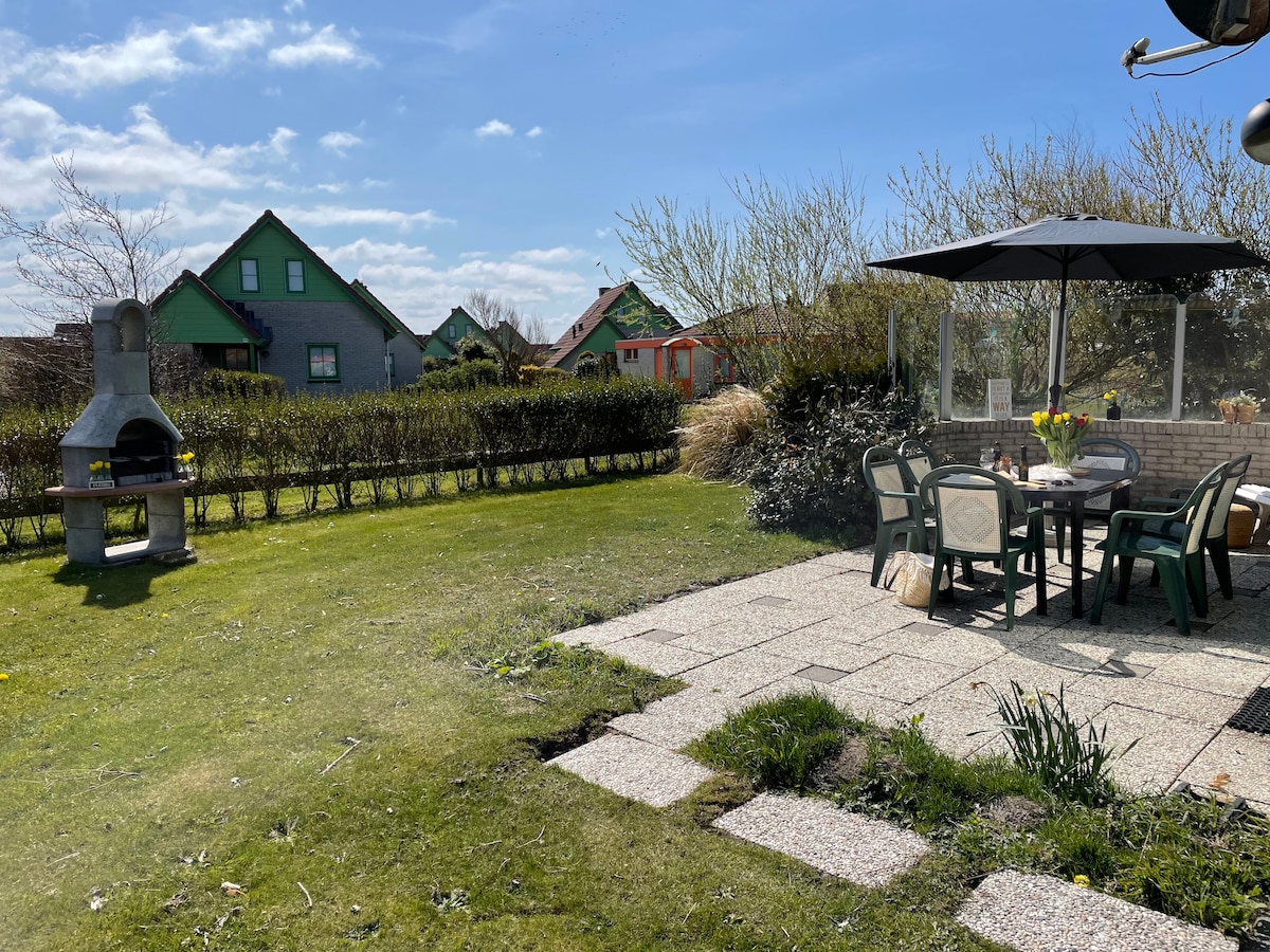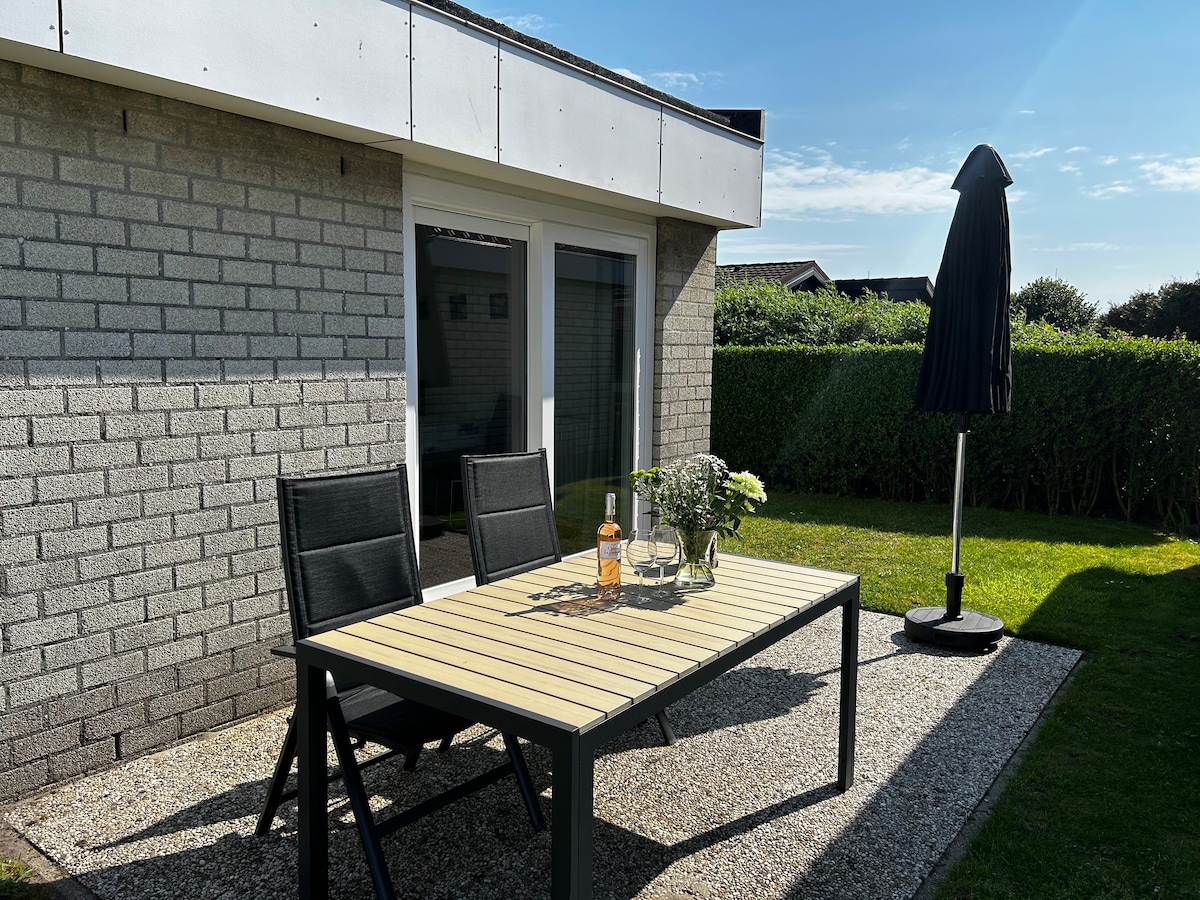 Beachhouse Bungalow op 400 meter loopafstand van het strand. Het huis is sfeervol ingericht en voorzien van alle gemakken, een overdekt terras, vaatwasser, wasmachine,droger, nespresso apparaat, smarttv voor netflix, boxspring bedden en elektrische verduistering. Een ruime tuin en 2 terassen om heerlijk te genieten van het mooie weer. Ⓧ Geen honden toegestaan ⓍKein Hunde