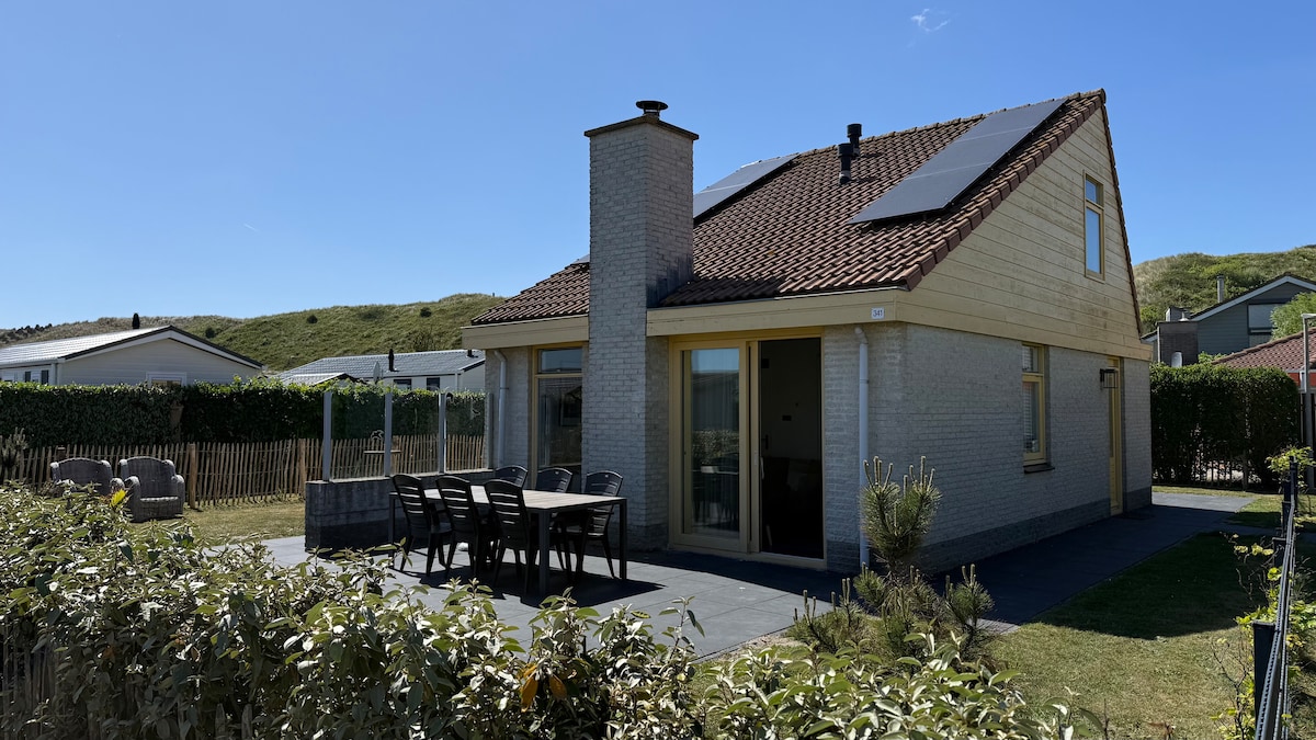 Heerlijk ruim, licht strandhuis op loopafstand van strand, op een rustig parkje met beschutte tuin en geweldige bamboe overkapping met zonnig terras op het zuiden. De woonkamer is ruim35m2 . Er zijn 2 2 persoons slaapkamers beneden, voorzien van boxspringbedden waarvan 1 met inloop douche en 1 grote slaapkamer boven met 3 losse bedden met toilet en wastafel. De keuken is voorzien van nieuwe inductie kookplaat en oven. Ruime badkamer beneden heeft grote inloopdouche. Er is gratis WIFI