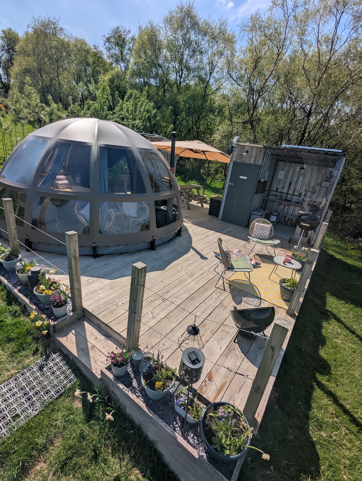 Situated in the grounds of “Caerau Gardens”, a charming and unusual bolt hole for a couple. With under-floor heating, a Sauna and a full cinema system with screen and a stunning audio system from Monitor Audio. The surroundings are wonderful, we even have our lake for fishing, swimming or perhaps kayaking. Sorry no pets or children Otherwise The Hovel? https://abnb.me/E51Vz3SGL9 If you have a small child or two or like a spare bedroom. No sauna but proper stairs, a cinema and wood burner.