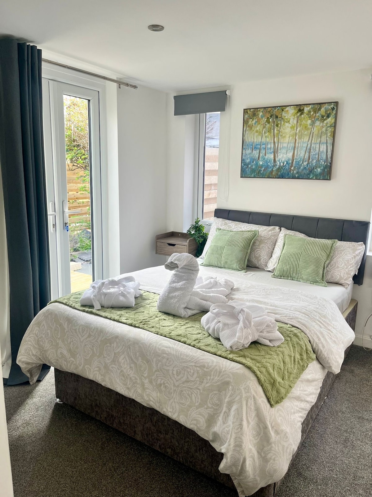 Welcome to Terfyn Hall Holiday Apartments. Breathtaking views overlooking the north wales coast. You will be sure to witness some outstanding sunrises and sunsets during summer months. Terfyn hall apartments are ground floor & suitable for disabled access. We have private free parking with cctv on the grounds for security.Boasting a large walk in wet room style shower, super king size bed & outdoor seating area- your stay will be one to remember. Decor is simple but modern and well equipped.