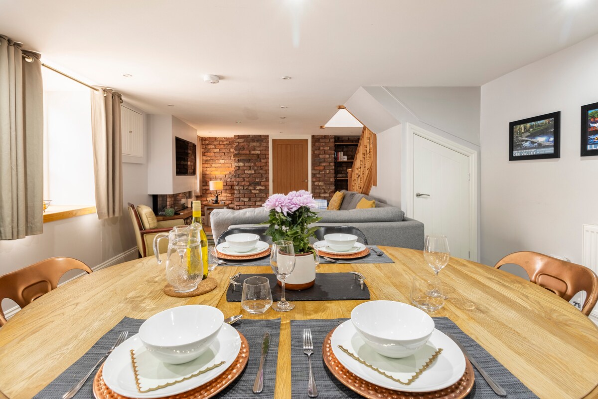 A cosy home with underfloor heating, woodburner, fully equipped kitchenette, king sized bed & private parking. 5/10 mins walk to the steam train station, pub, canal & river. 1 mile from the centre of Llangollen which has many more pubs, restaurants & activities. Being in the area of outstanding natural beauty there are walks from the doorstep, but we're also only 35 minutes to Eryri/Snowdonia. The barn is not a big space, but is perfect for a getaway for two people. Everyone is welcome.