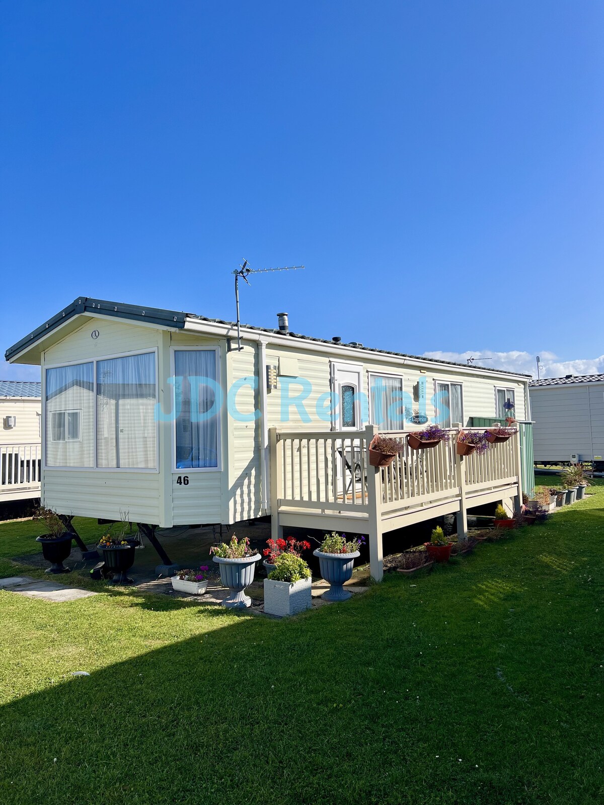 Our beautiful 2 bedroom 2 bath room sleeping 6 person central heated double glazed caravan. Onsite facilities include swimming pool, Direct Access to the beach, Jakes Bar and a shop and launderette.