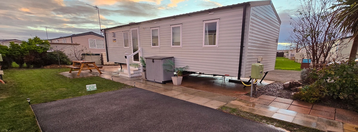 3 bedrooms, Sleeps 6. Sorry no pets Lounge and dining area, Smart TV, Gas Fire, Private WIFI. Fully double glazed and central heated. Fully equipped kitchen with full gas cooker, microwave, toaster, kettle and fridge/freezer. Master with Double Bed 2 x Twin Singles Bathroom with toilet, sink and shower. Parking next to the caravan Check-in - 3pm Check-out - 10am You will need to bring your own bedding - pillow cases, sheets, duvet covers & towels. (we provide pillows and duvets)