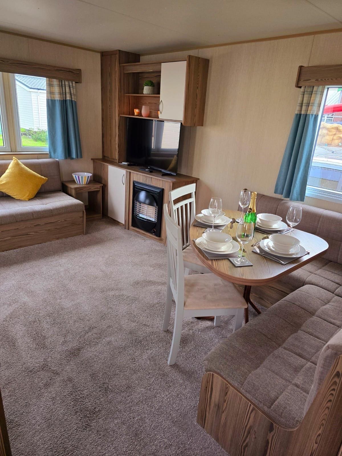 3 Bedroom Sleeps 8 🌟Double bedroom 🌟2x Twin bedroom 🌟Pull out sofa bed in lounge Wi-Fi - is available free of charge We allow pets in this property Hot water and wall mounted heaters throughout caravan Bed linen- please note this is not included with the cost, if you would like to hire linen, please message me and I can arrange this to be ordered for your arrival.