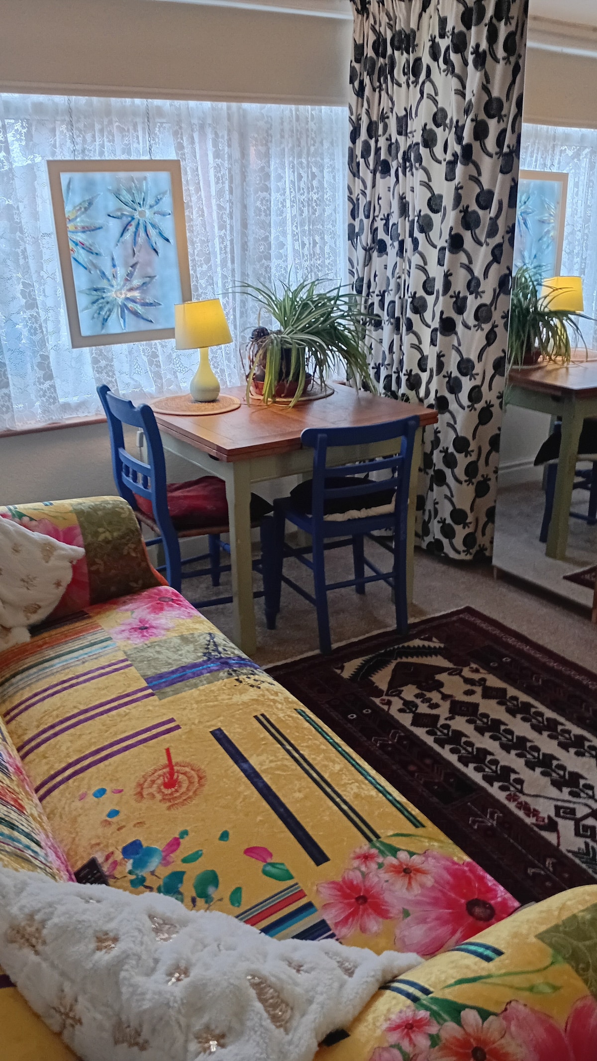 Art House Wales, Llangollen Beautifully restored Art Deco townhouse filled with antiques and local artwork, just moments from the High Street. Sleeps up to 9 across four stylish bedrooms with king, super-king, double and triple bunk beds. Open-plan lounge, dining and high-spec kitchen with Stoves induction range cooker and quartz worktops. Three Art Deco bathrooms, roll-top bath, wood-burning stove. Small front garden and private rear yard. A creative, characterful home in the heart of town.