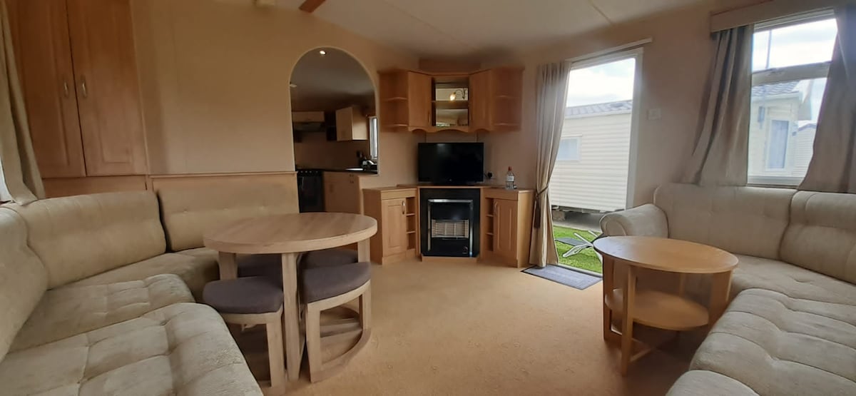 Modern, clean 8 berth caravan on (Lyons Robin Hood park. 100 yds from a blue flag beach. 50 yds from golf course. Just a short 2-3 min drive to both Prestatyn and Rhyl. On site indoor pool/splash area, amusements, entertainment, play areas, crazy golf, ball court, fish n chip shop etc. sports bar with indoor/outdoor seating, Adults only entertainment room and Irish bar. Snooker hall. Child friendly, Great for families and Adults. Private parking. Decking area to lounge. Fire/Smoke alarms.