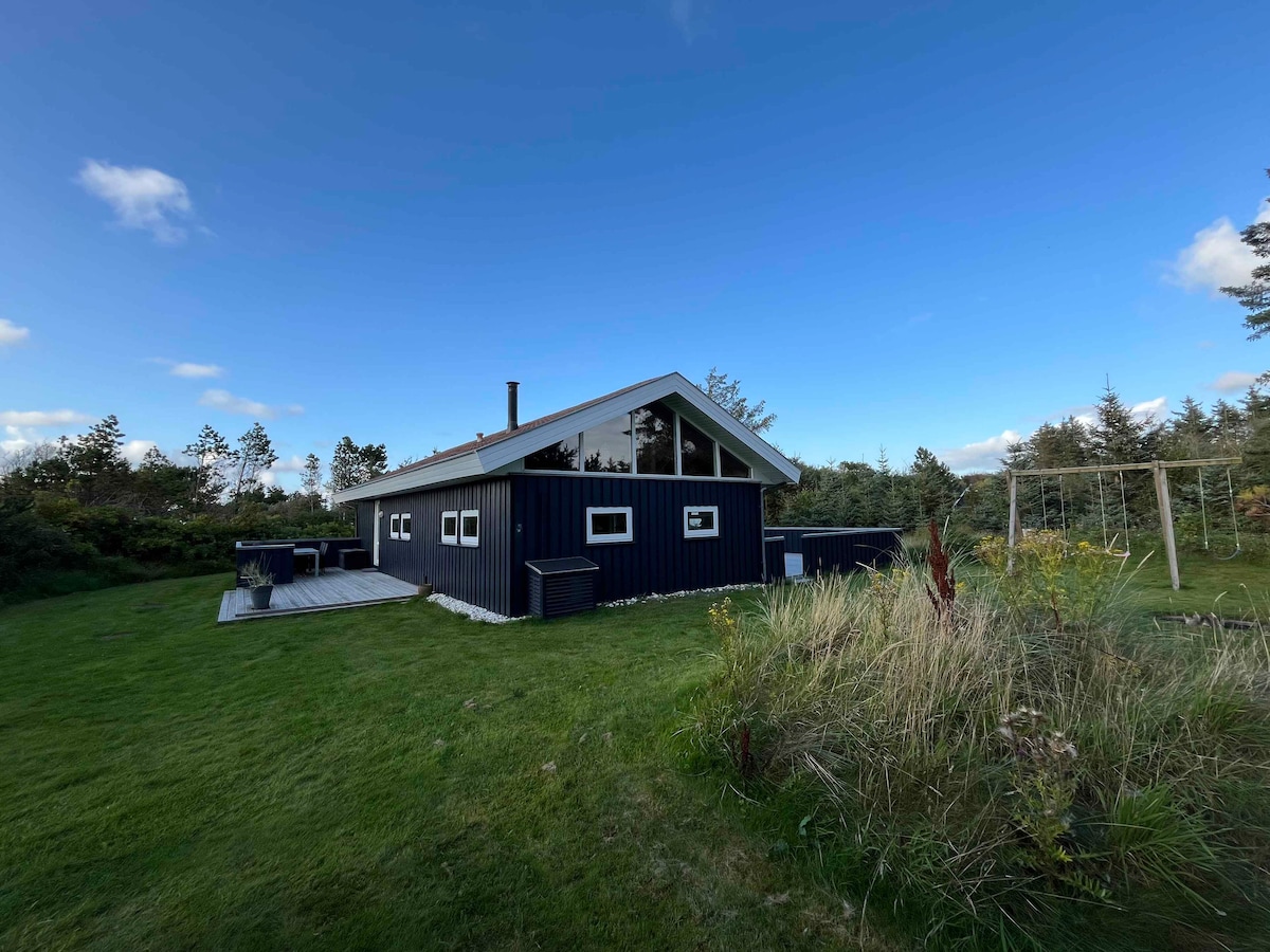 Unikt, skandinavisk sommerhus fra 2023. Huset er smukt integreret i naturen. Beliggende i lyng og egekrat. I hjertet af fantastiske Nordjylland. Tæt på Vesterhavet. Tæt på Kattegat. Tæt på Råbjerg Mile. Gåafstand til golfbane ca. 1. km. Og kun 18 km. til Skagen. Bo midt i naturen og oplev ro og velvære. Mærk den afslappende komfort ved at være omgivet af enkel skønhed. Huset ligger perfekt for terrasseliv og naturoplevelser: MTB, golf, vindsurfing, badeliv, shopping- og restaurantbesøg i Skagen.