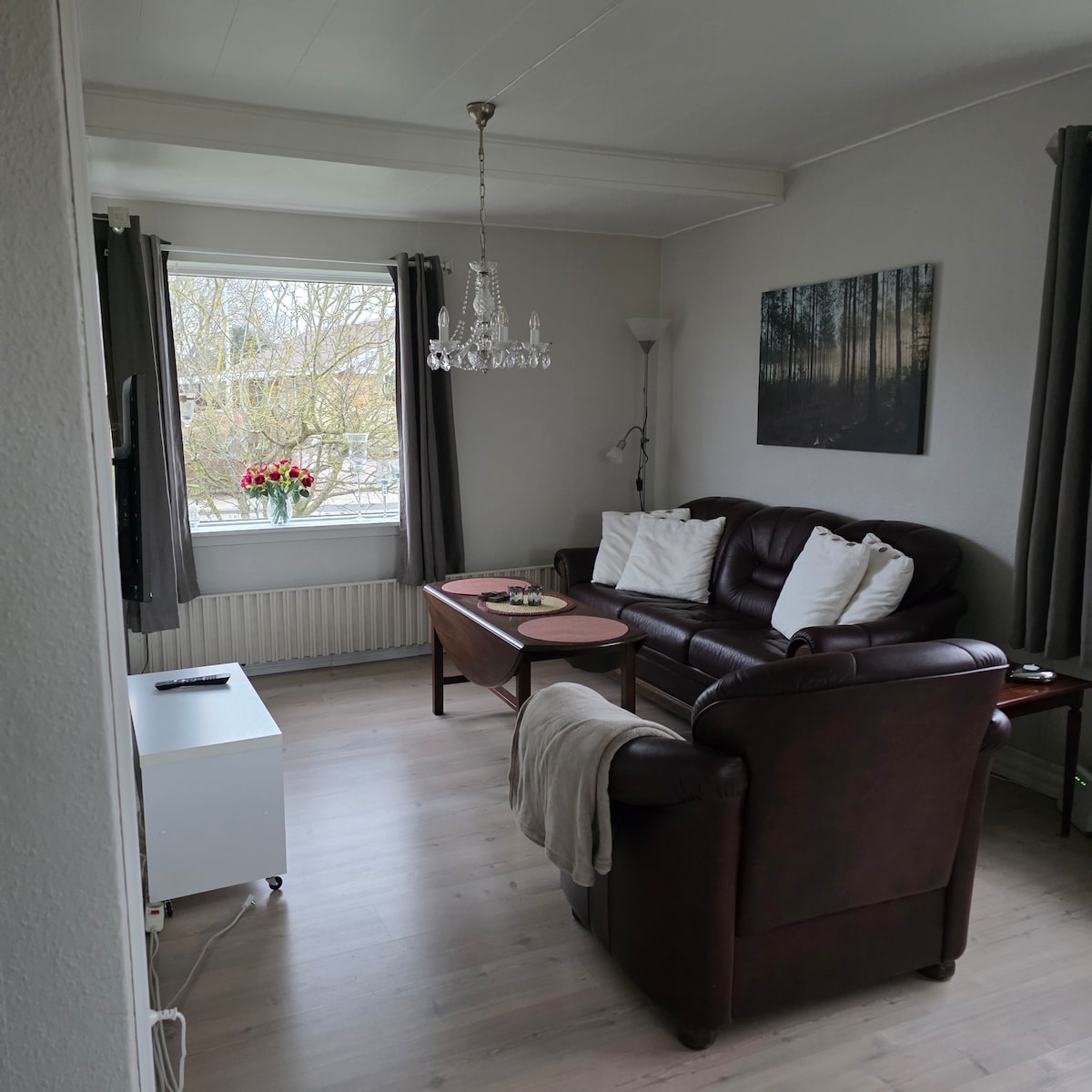 NO Youth groups 2 bedrooms,1 bathroom, 1 kitchen/ living room, separate entrance. (Living area about 75 m2) The apartment is a ground floor-apartment , but you have to use an outdoor or indoor staircase. Not suitable for people with disabilities. There is a lovely view to the garden from both bedrooms. Our house is situated in a quiet area near municipal park.