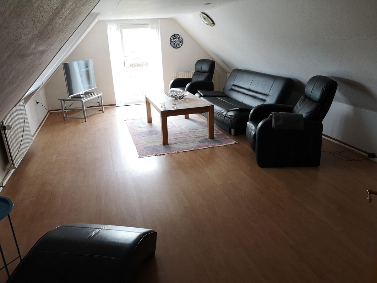 Nydelig loftlejlighed til 4 personer. 1 soveværelse med dobbelseng og sovesofa i stuen med mulighed for opredning til 2 personer. Der er indkøbsmuligheder indenfor 500 meter; Dagli' brugsen og Konditor Bager. Ladestation til Elbil ved Dagli' brugsen. Spisemuligheder Hotel Outrup, Pizzaria og Shell Grillen. Kunstmaler Otto Frello's fødeby. Dejlig naturområde, 10 km til Henne Strand, Filsø Natur, Blåbjerg plantage cykel - gå stier. Pay and Play golf, Fun Park Outrup og Vesterhavets Barfodspark.