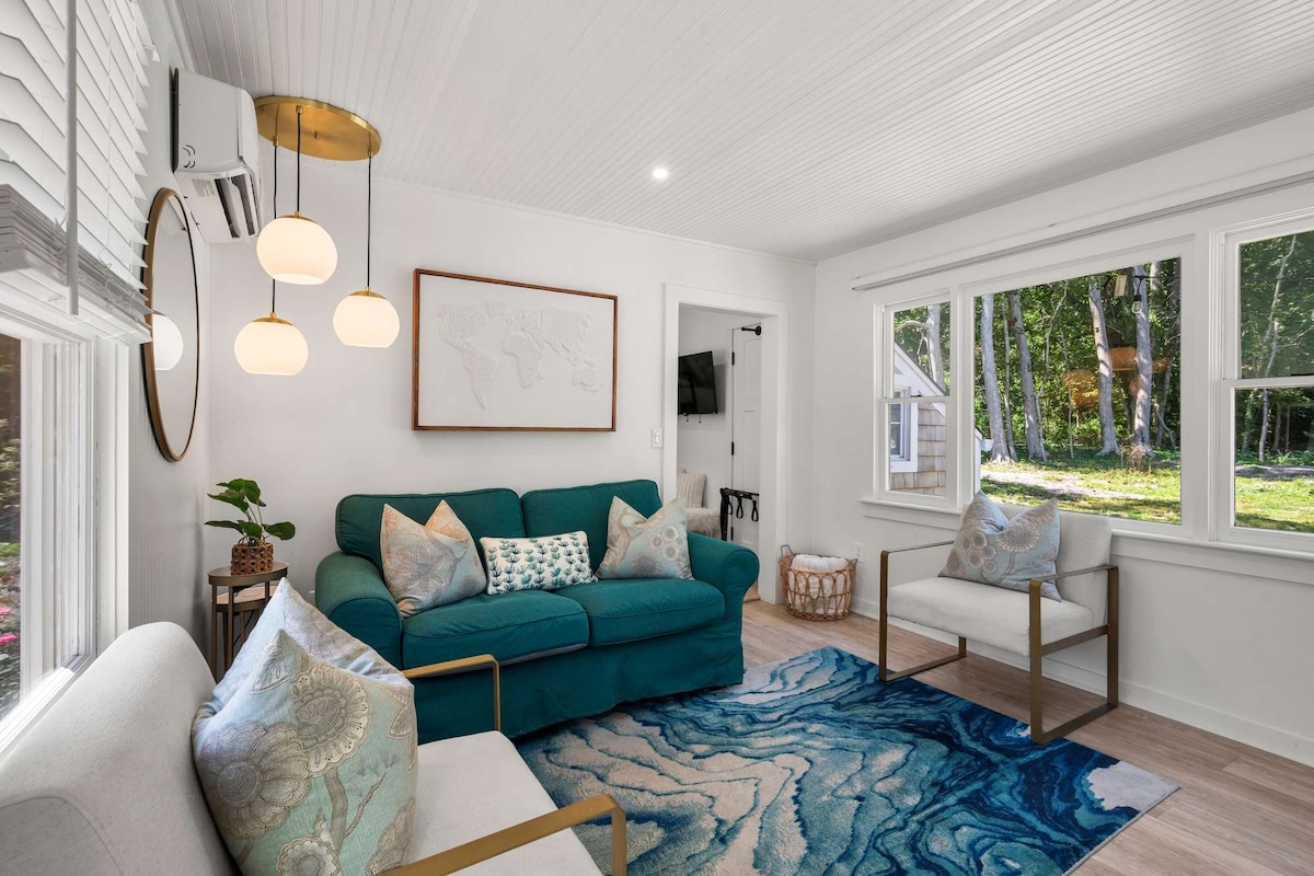 Welcome to SEAGLASS COTTAGE! 🔸 200 MBPS WIFI 🔸 Steps to sandy beach on a crystal clear pond 🔸 Pet friendly 🔸 Linens & towels are included. Beds will be made 🔸 Swim, fish or use our 2 kayaks & 2 SUP’s 🔸 Bluestone private patio w/waterviews+charcoal BBQ 🔸 Outdoor shower 🔸 Sunroom w waterview 🔸 Washer+dryer 🔸 Fully equipped kitchen w/Carrera marble counter 🔸Gas firepit 🔸Ductless A/C & Heat 🔸Small library of books, didn't finish the book? Take it! 🔸Pet fee $25/day