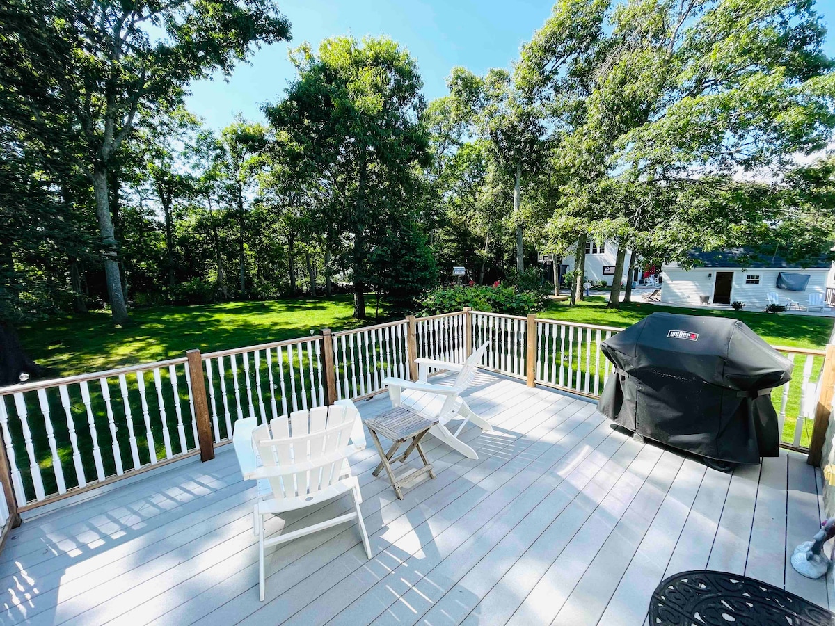 A quiet home nestled next to conservation land at the end of a dirt road. Though there are neighbors, the landscaping creates a private oasis. The downstairs apartment with private entrance is old New England with Cape Cod affects. The Bedroom has a queen bed. Second sleeping area has a Daybed with trundle and is partially open to the living area. Outside deck has a grill and shower for guest use. Close to School House pond, bike path, and 3 miles from beaches, shopping, and downtown.
