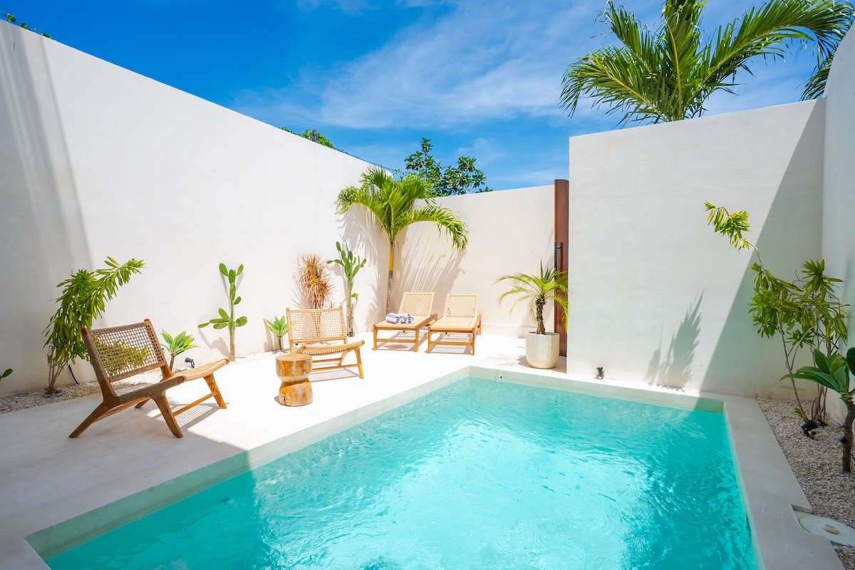 Welcome to Casa Admire Villas! This newly built villa complex features three (3) private villas. Each blending modern aesthetics with the lush beauty of tropical design and each has its own private pool, a kitchen, modern furnishings, and tropical-inspired elements that connect you with nature. Our 1-bedroom villa offers a serene tropical design with a minimalist touch. Features private pool and a beautiful arched seating area. perfect for honeymooners or anyone seeking a romantic escape