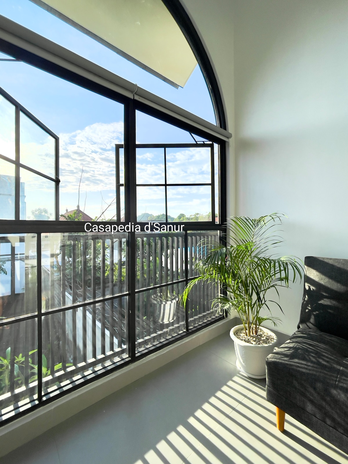 Newly built to European standards spacious 35m studio with modern design and interior, double glass windows, kitchen with induction cooking device, fridge, magnetron, coffee maker, water dispenser, living room with charming egg chair, leather couch and wide screen tv, wifi, private bathroom. Access to rooftop garden and pool (only shared with 5 exclusive studios and apartments). Strategically located between Sanur and Dps, only 5 min. from Sanur Beach and 10 min. from Denpasar city Per June 18