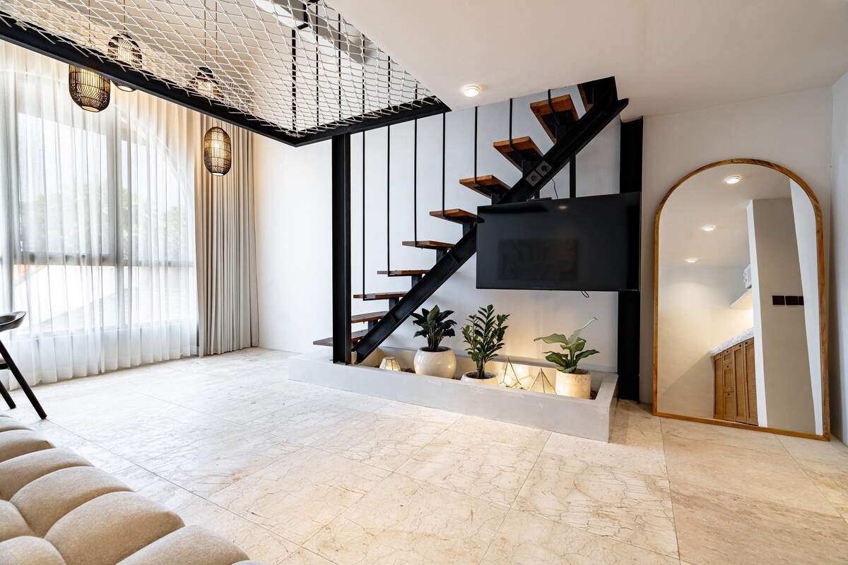 Rasakan perpaduan sempurna antara gaya dan kenyamanan di “Three Mezzanine Bali” bertema industri yang dirancang sebagai apartemen compact, terletak dekat dari Pantai Sanur dan pusat kota. Cocok untuk pasangan, pelancong solo & digital nomad. TV pintar 50 inci, Fast WIFI sampai 400mbps & tempat tidur sofa yg nyaman di ruang TV. Dapur lengkap & teras belakang pribadi. 7 menit ke Pantai Sanur 7 menit ke Rumah Sakit Internasional Bali 40 menit ke Bandara Ngurah Rai