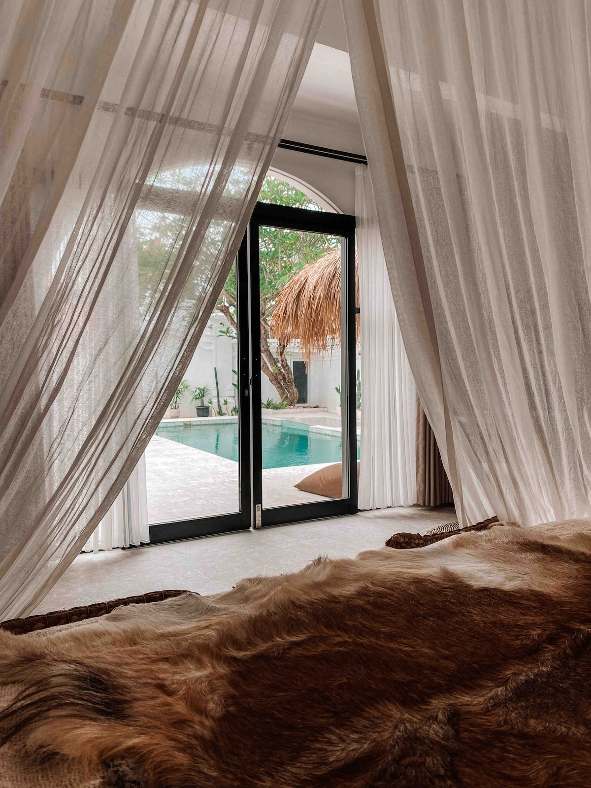 带泻湖绿洲的巴厘岛现代卧室