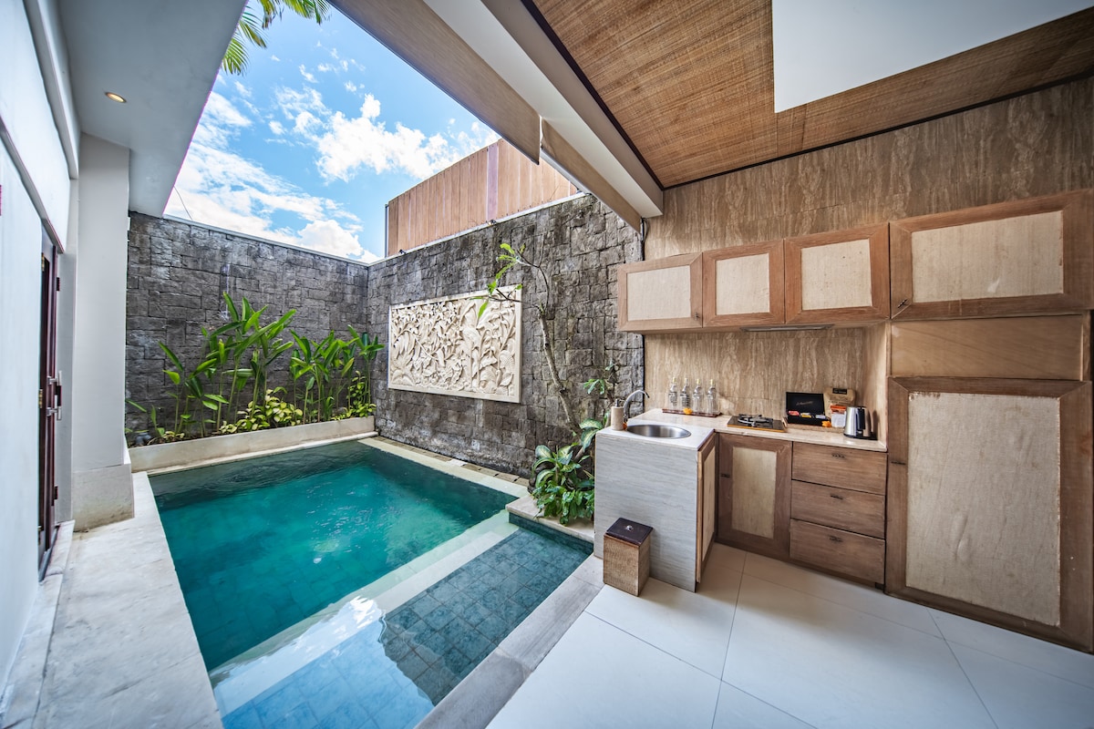 A life of luxury located in the vibrant heart of Kuta And Seminyak ✔️Free Flower Necklace ✔️Free 5 Minute Foot Massage ✔️Free Welcome Drink ✔️Free Welcome Cold Towel ✔️Daily Villa Cleaning ✔️24 Hour Security ✔️ Free Atlas BeachClub Entry + Discounts Our stunning 1 Bedroom villas are designed for Couples,families,solo travelers or honeymooners seeking an exclusive Luxurious escape. Enjoy your very own Private Marble pool,Marble pool Outdoor shower,not forgetting the glamorous Poolside Day bed.