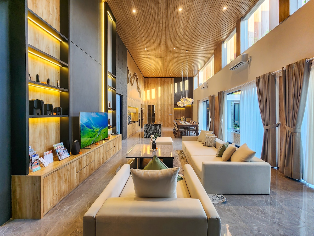 This modern and luxury Villa is perfect for any kind of groups like friends, families or companies. We do allow you to make PARTY here! We have a super SOUND-SYSTEM with projector, large screen and wireless Microphones! There are 6 spacious bedrooms, all with ensuite bathroom. Standard bedding configuration: 6 King size beds, 9 single beds, 21 sleeps. We can add 5 additional single beds to a maximum capacity of 26 sleeps. The Villa comes with staff for cleaning, managing and a night security