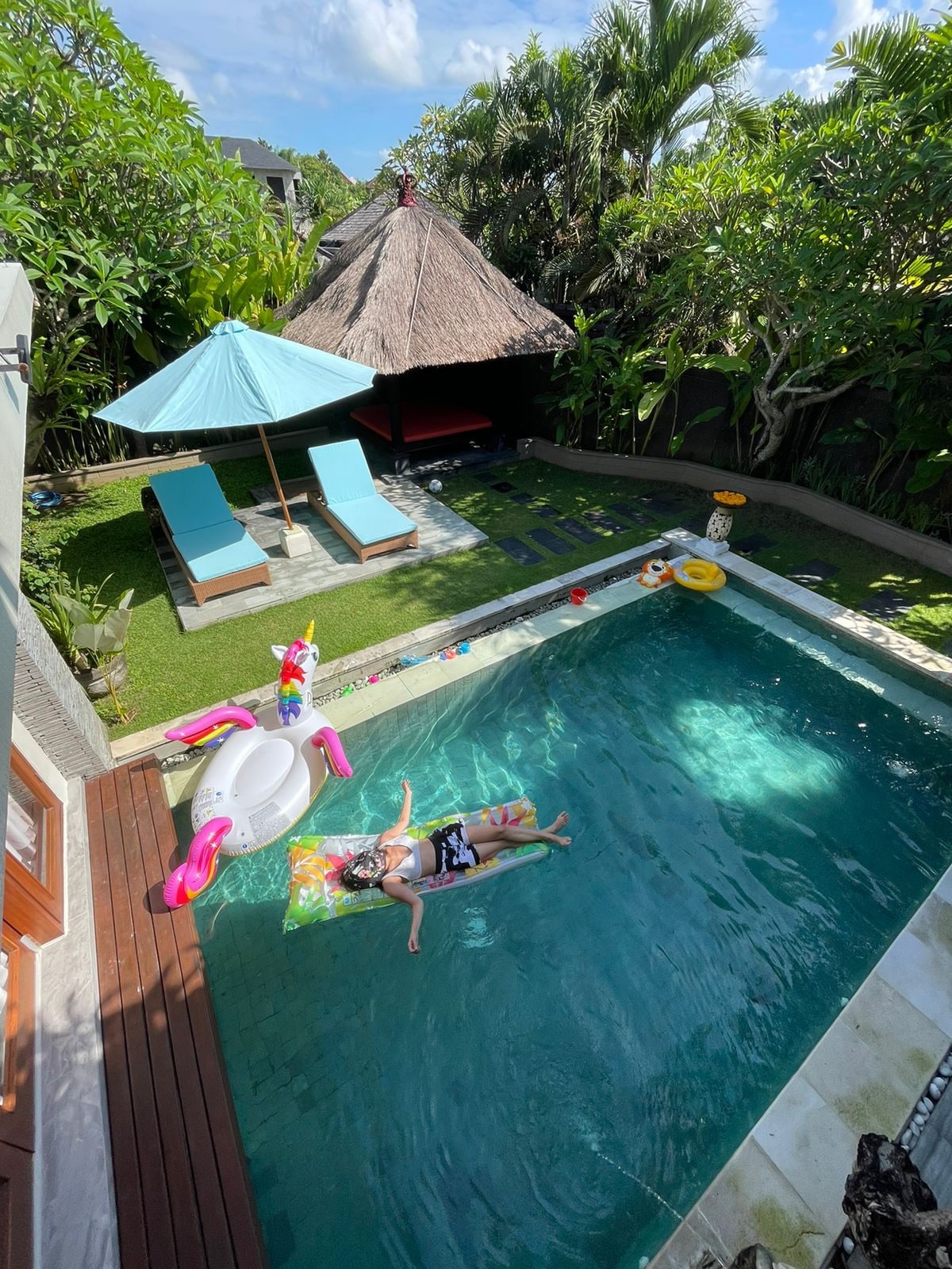 cozy one-bedroom townhouse with a private pool located in a quiet street in Legian. Perfect for couples or small families! Legian Beach and Double Six Beach are just 10 minutes away by scooter. Take a short stroll out to Jln Dewi Sri where there are tons of cafes, restaurants, supermarkets and shops. Very easy access to Seminyak and Kuta as well! if stay more than 7 nights we will give one time free transport pick-up from airport , we have scooter serve transport and tours as well