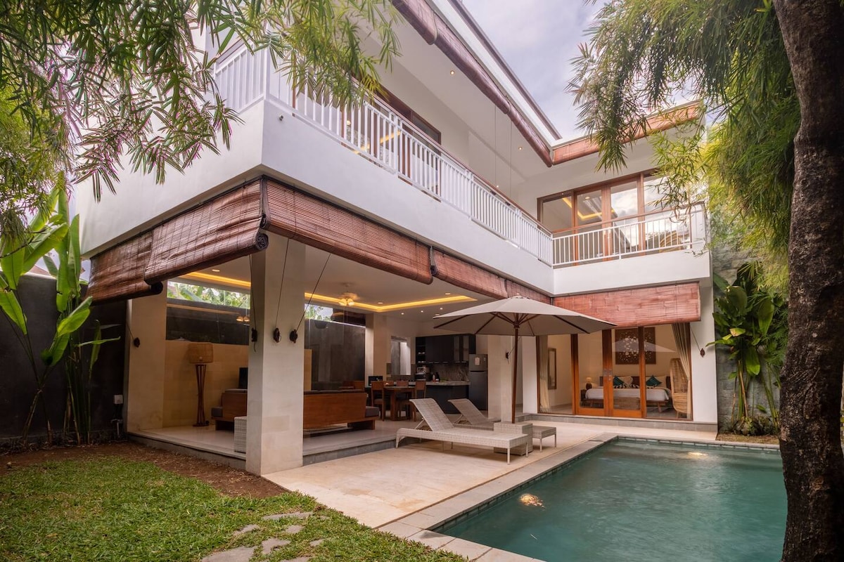 Pamper yourself. Large 350 m² (3,767 ft.²) private luxury villa. Private 9 mtr. (30 Ft,) pool. Large living, dining areas & Air-Conditioned bedrooms. Large Kitchen, appliances. Private Housekeeper. Reasonable free laundry. Stores, Restaurants, Spas & 6 Km white sand beach 1-8 min walk. 24-hr security. Concierge. Managed 17-yr. old TripAdvisor award winning company. CHSE certified Clean, Healthy, Safe & Environmentally Friendly. *Price includes max 1 Bedrm per guest. Excess Bedrms locked.
