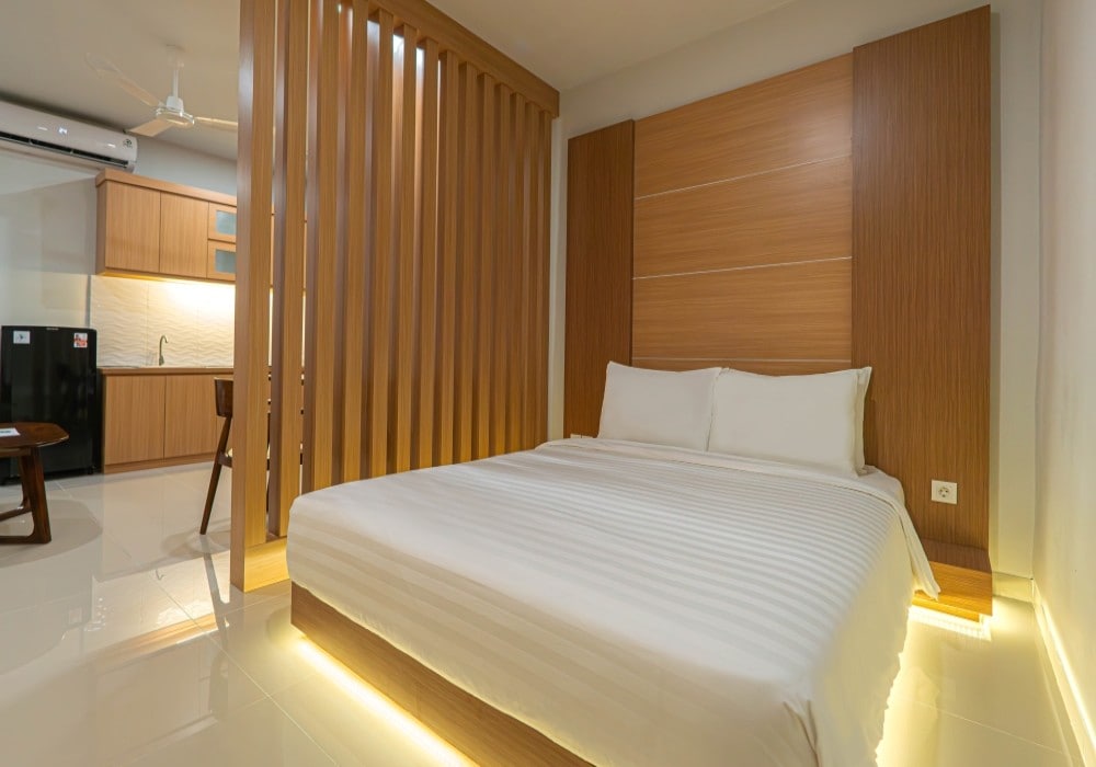 Modern Apartment in the Heart of Sanur: • Stylish air-conditioned studio with smart layout • Shared pool surrounded by tropical greenery • Airport transfer on request • Kitchenette with stovetop, fridge & essentials • Ensuite bathroom with shower, amenities & hairdryer • High-speed Wi-Fi • Cleaning with fresh towels & linens • Smart TV • Baby cot & high chair on request We also manage similar apartments in the same style and building - check our profile for more options!