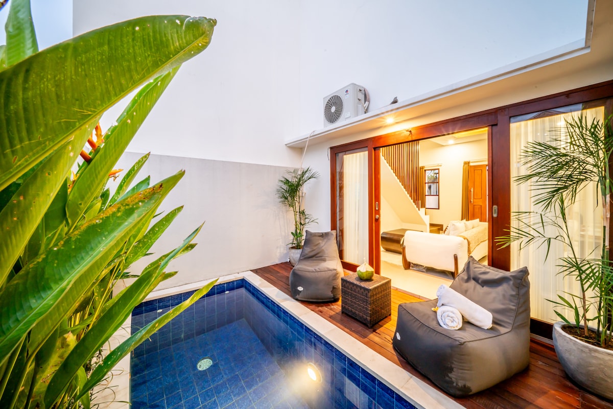 A 9-Minute Walk to the Beach Welcome to Mediterra Luna. Our newly built 2 bedroom luxury Mediterranean-themed villa is ideally suited to families, small groups and couples who are looking for a stylish and modern Bali getaway. Just a short walk the beach, shopping, and restaurants, and designed with your convenience and comfort in mind. Enjoy the spacious and modern open-plan interior and a family-friendly swimming pool and deck area to unwind on your next Bali escape.