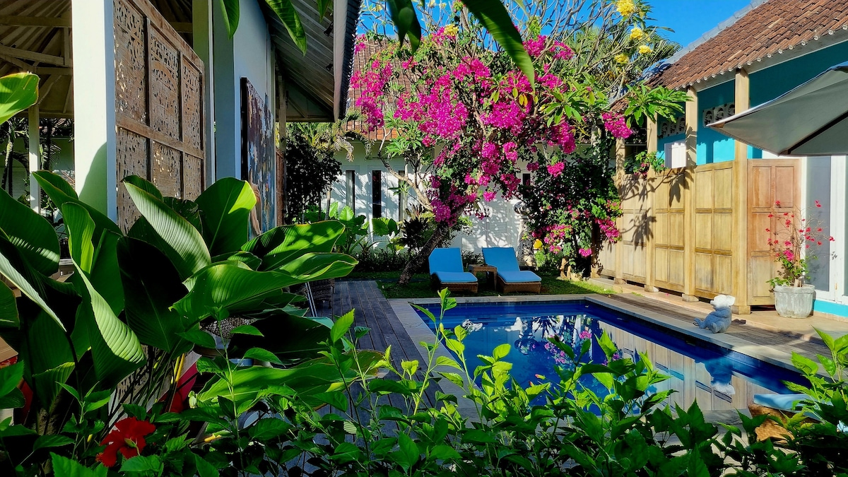 Awesome and luxurious guest house, so far best quality in Bali, It is worth visiting. Located in calmer part of Sanur, A lot of warungs, shops and super market within walking distance. Rooms are very large 4.50M by 5.00M spacious and super tidy. Great and clean pool as the whole area of the guest house, want to be 7 minutes to the beach and 30 minutes from Denpasar airport. Car,Scooter rental and public transport are easily available in this area. WIFI SPEEDS 75 Mbps Share Pool.