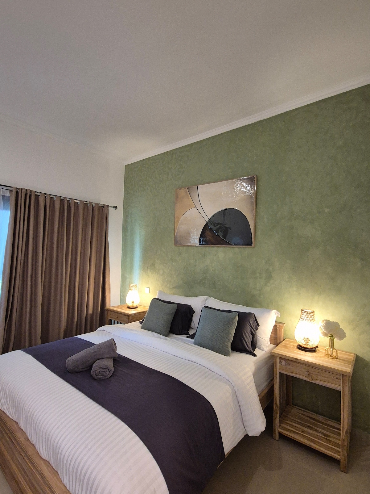 New 1BR Apartment in Central Ubud: • Comfortable king bedroom with floor-to-ceiling windows and jungle/rice-field views from the balcony • Modern bathroom with premium toiletries & hairdryer • Fully equipped kitchenette and dining table • Shared tropical garden, patio and large swimming pool • 300 Mbps Wi-Fi • Daily cleaning, fresh towels & linens included • Baby cot & high chair on request • Netflix & PS5 on request • Concierge service for scooter rental, transfers, spa bookings, tours & more