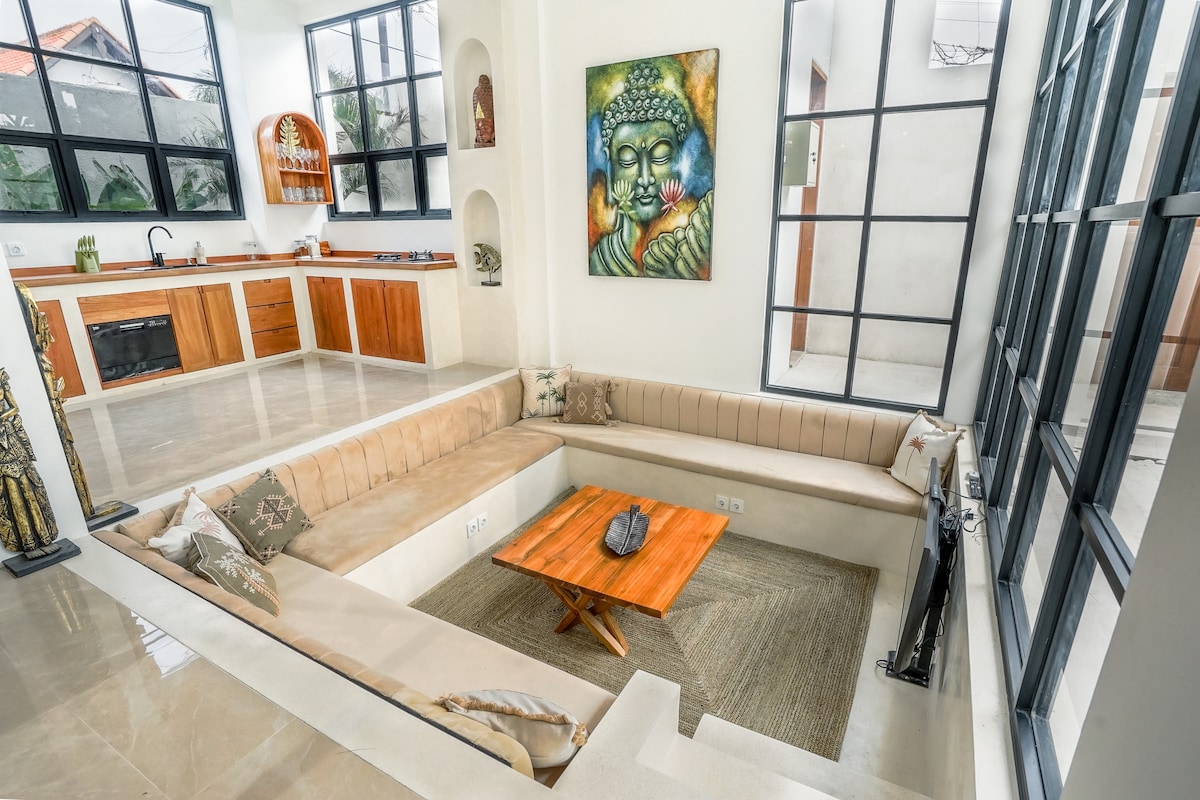 Located right on the boarder of Seminyak & Legian, just behind Jl. Arjuna (near Horizon Hotel) in a super central location. Only 6 mins walk to Double Six Beach, lots of great cafes & restaurants sounding the area. Bintang Supermarket is only a short walk away for all your supplies. There is a great beach path all the way down to Kuta for a beautiful morning walk. And there are some great beach clubs all within walking distance, Cocoon Beach club & Sunset Beach by Mrs Sippy's are all close by.