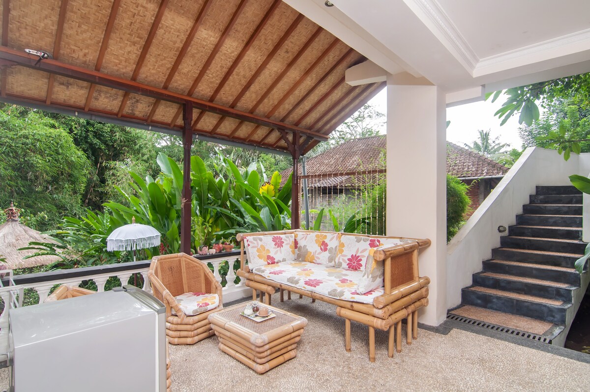 Family run villa with a private suite (private bedroom andbathroom,kitchen and pool, Garden and gorgeous sunset views) Quiet and secluded. Yet only a 2-minute walk to shops and restaurants. Just an 8-minute walk to the center of town. This gorgeous villa is your paradise in Ubud for your stay. and the hospitality of our Balinese family.