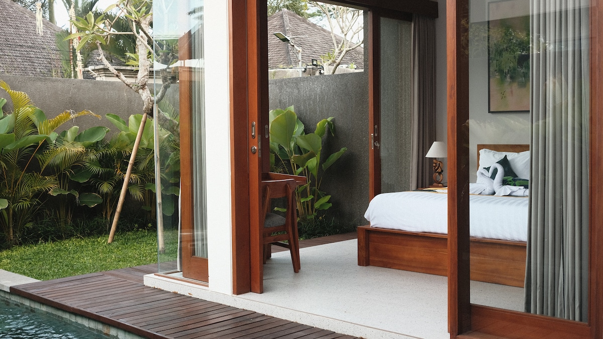Brand-new 1BR designer villa in Seminyak • Stylish air-conditioned bedroom with direct pool access • 1.5 bathrooms, including a bathtub with natural stone wall • Private turquoise pool & lush garden • Modern open-plan kitchen & dining area • Dedicated office room • Bright, airy living space with floor-to-ceiling glass • Fast 300 Mbps Wi-Fi • Daily cleaning, fresh towels & linens • Baby cot & high chair on request • Concierge service for scooters, transfers, spa & tours