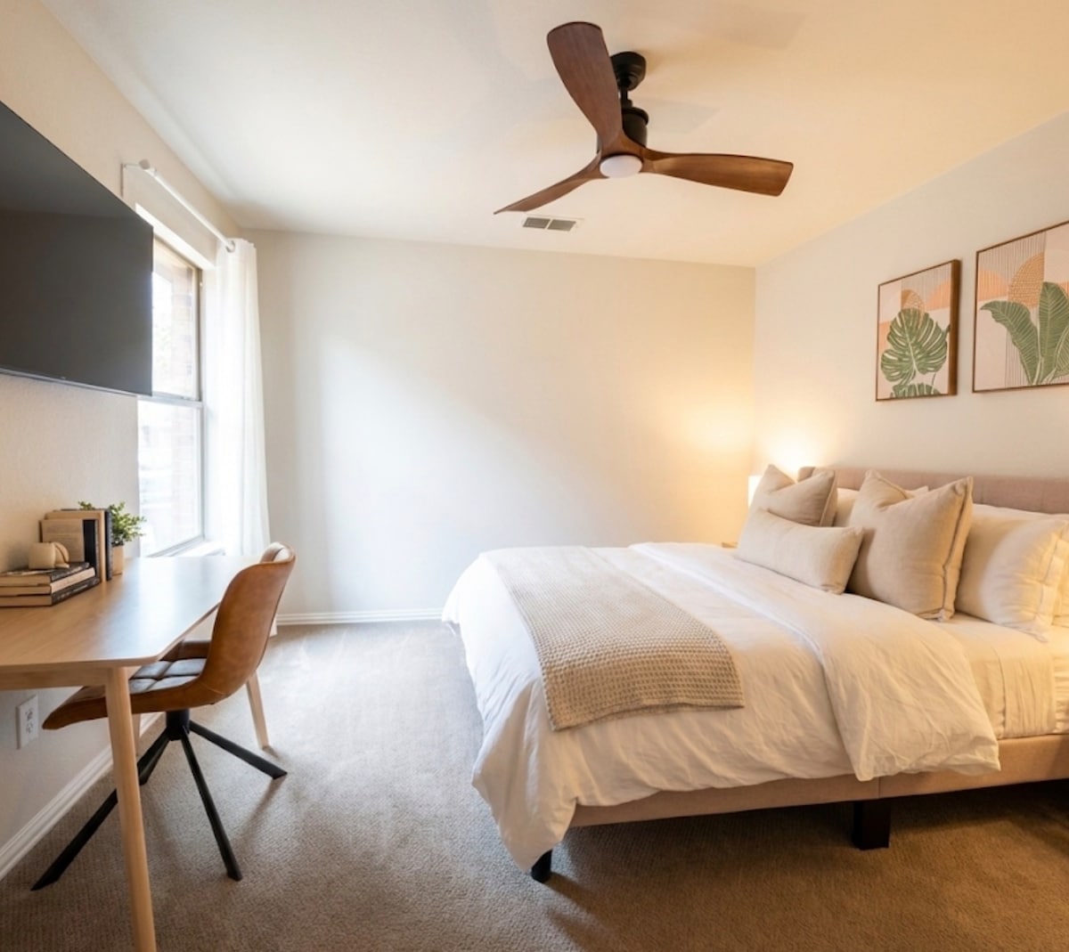 Kick back and relax in this brand new calm, stylish studio. Located off of Interstate 35, this is a prime location for taking a quick trip down to Dallas or to the UNT college campus. Our guests will enjoy a private unit with a walk in shower, full size appliances, in-unit washer and dryer, and complete blackout shades for those that work nights or like to sleep during the day. This space would be ideal for parents visiting their children at UNT or traveling healthcare professionals.