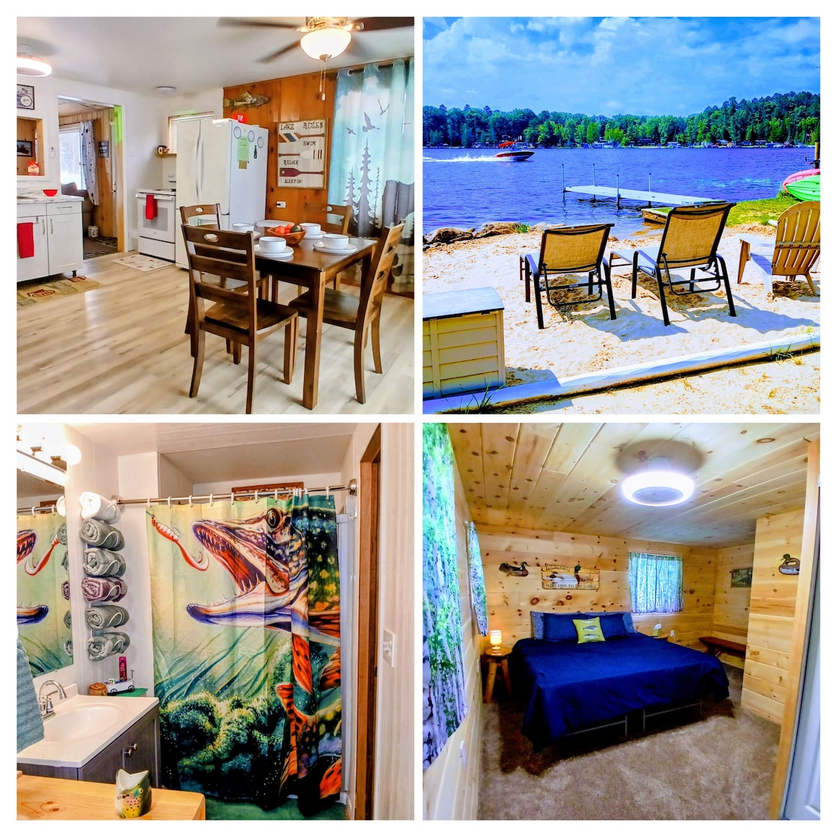 Enjoy all the lake has to offer in this adorable lake front cabin with amazing views! Watch the sunrise from the kitchen while you sip a cup of coffee. The sunsets from our beach can’t be beat. The beach is sandy with no sea wall & perfect for swimming! The beach and dock are shared with 3 other cabins. If you plan to bring a watercraft please inquire about space before booking or ask about our pontoon rental! If you need more than one cabin we may have another available. Inquire by message.