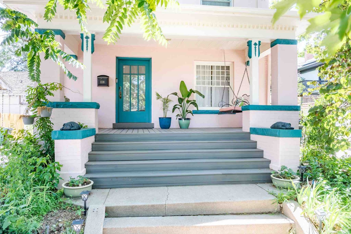 Colorful Victorian home very close to restaurants, Denver Botanic Gardens, 3 parks, and downtown. - Three queen-size beds in three separate bedrooms, pillow-top mattresses with multiple bed pillows - 4th bed: queen-sized fold-out couch, and a 2-inch memory-foam topper - fully-equipped kitchen - tons of games/books - Roku - table seats 10 - high quality shampoos, soaps, lotions, no parabens - all in one washer/dryer - Window a/cs in the 3 bedrooms, and indoor Evaporative Cooler for the LR/DR.