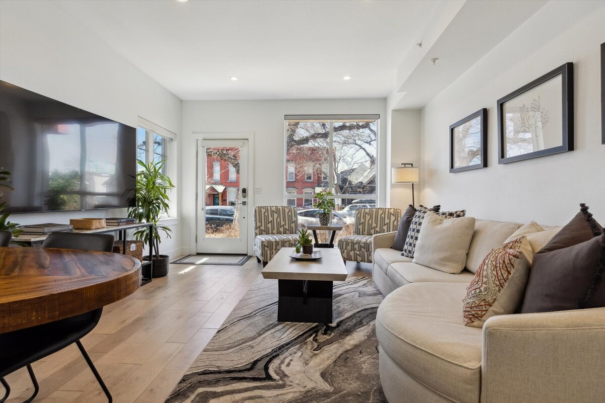 End-unit Townhouse (1 shared wall) right in the heart of Denver with a beautiful rooftop patio displaying downtown and mtn views! This 2 bedroom 2.5 bath with a queen-sized fold out couch bed boasts all the high end finishing touches that will make you feel like you are living large! Bombay doors on terrace extend living room area. Walking distance to many bars and restaurants. Liquor store and Beyond Thai across the street. Easy Uber to anything downtown has to offer. Within a mile of City Park