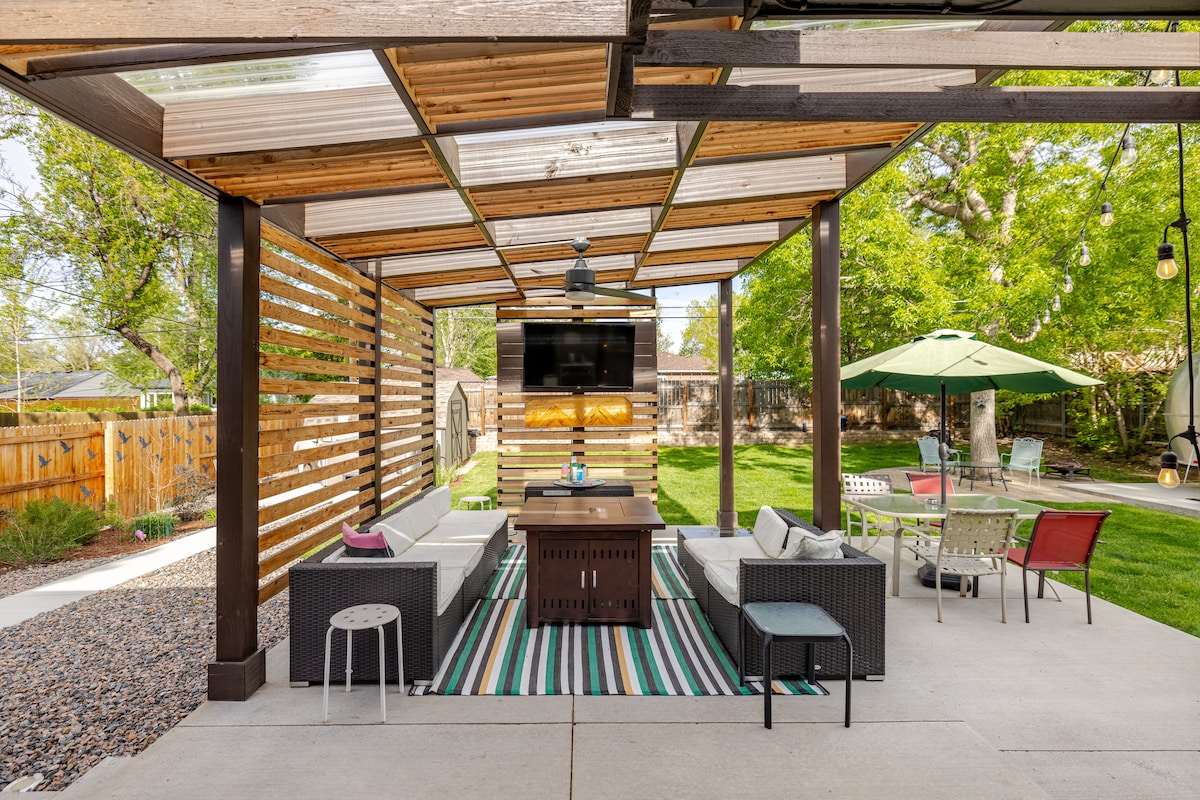 Imagine a stay that provides comfort, convenience, and is centrally located between Denver, Red Rocks Park, and Boulder. You’ve found it! Gather the group at Blossom Bungalow. Enjoy unique spaces, including a hot tub, dining booth w/ flower backsplash, movie room, pool table, putting green, reading nook, sun/yoga/board game room, along with fully equipped kitchen in the open floor plan. All topped off with streaming services & fast wi-fi.