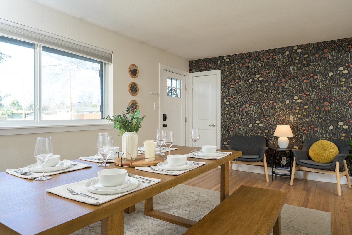 Welcome to our luxurious mid-century modern ranch home adjacent to Lake Rhoda in Wheat Ridge, Colorado! With 4 bedrooms and 2 bathrooms, our home can comfortably sleep 12 guests among its 9 beds. Nestled in Wheat Ridge, a western suburb of Denver, this private home is located on .33 acres on a corner lot. Our home is located just 5 miles away from the heart of Denver and attractions like Coors Field, the Denver Zoo, and Red Rocks. Keep reading for our favorite Denver restaurants & attractions!