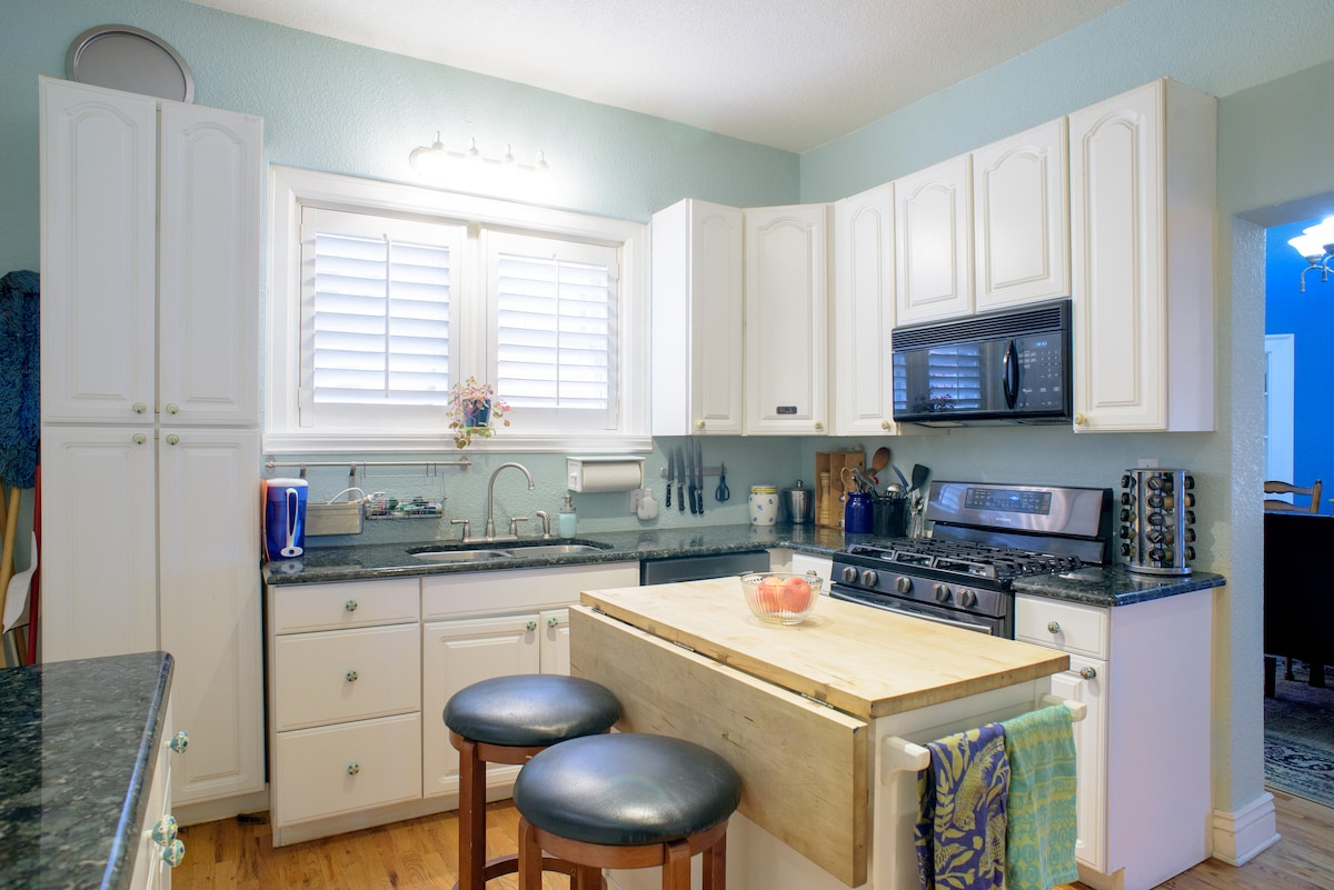 Colorful Victorian home very close to restaurants, Denver Botanic Gardens, 3 parks, and downtown. - Three queen-size beds in three separate bedrooms, pillow-top mattresses with multiple bed pillows - 4th bed: queen-sized fold-out couch, and a 2-inch memory-foam topper - fully-equipped kitchen - tons of games/books - Roku - table seats 10 - high quality shampoos, soaps, lotions, no parabens - all in one washer/dryer - Window a/cs in the 3 bedrooms, and indoor Evaporative Cooler for the LR/DR.