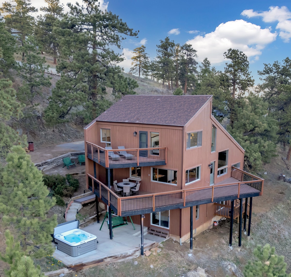 Permit #24-106357 You will feel worlds away on these 2 rolling acres. The cabin is a perfect mountain getaway to enjoy tranquil peace, yet only 3 minutes from I-70, restaurants, shops, trails, and beauty! The large sun room is the crowning glory of the cabin; it doesn't intrude on nature but is built with nature in mind. It places you in the middle of a wooded landscape boasting large windows all around that make you feel like you are outside in the snow, yet stay warm and cozy inside.