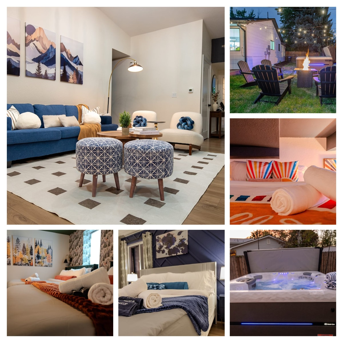 Imagine a stay that provides comfort, convenience, and is centrally located between Denver, Red Rocks Park, and Boulder. You’ve found it! Gather the group at Blossom Bungalow. Enjoy unique spaces, including a hot tub, movie room, pool table, putting green, sun/yoga/board game room, reading nook, dining booth w/ flower backsplash, along with fully equipped kitchen in the open floor plan. All topped off with streaming services & fast wi-fi.