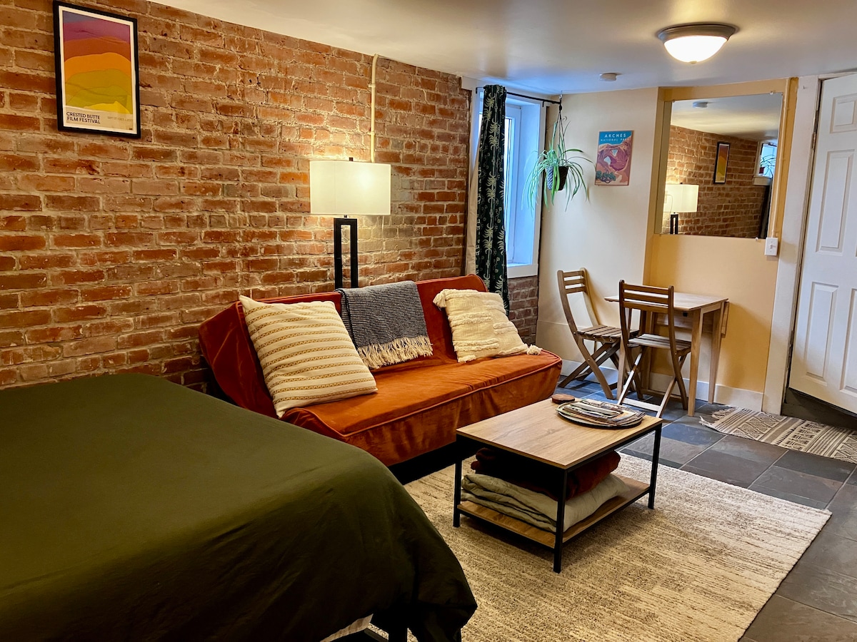 Garden-level studio near Wash Park, Gaylord St, Pearl St, and DU. You’ll love its urban chic decor with exposed brick and beams. It can easily accommodate a couple, DU parents visiting the kids, or solo travelers. Private entry w/ kitchenette, 3/4 bath, 2 bikes, king bed, & queen sofa bed. Explore historic neighborhood shops and restaurants, or stay in for movie night on the large flatscreen with AppleTV. Free assistance available for booking a car, tours, and restaurants. All are welcome here!