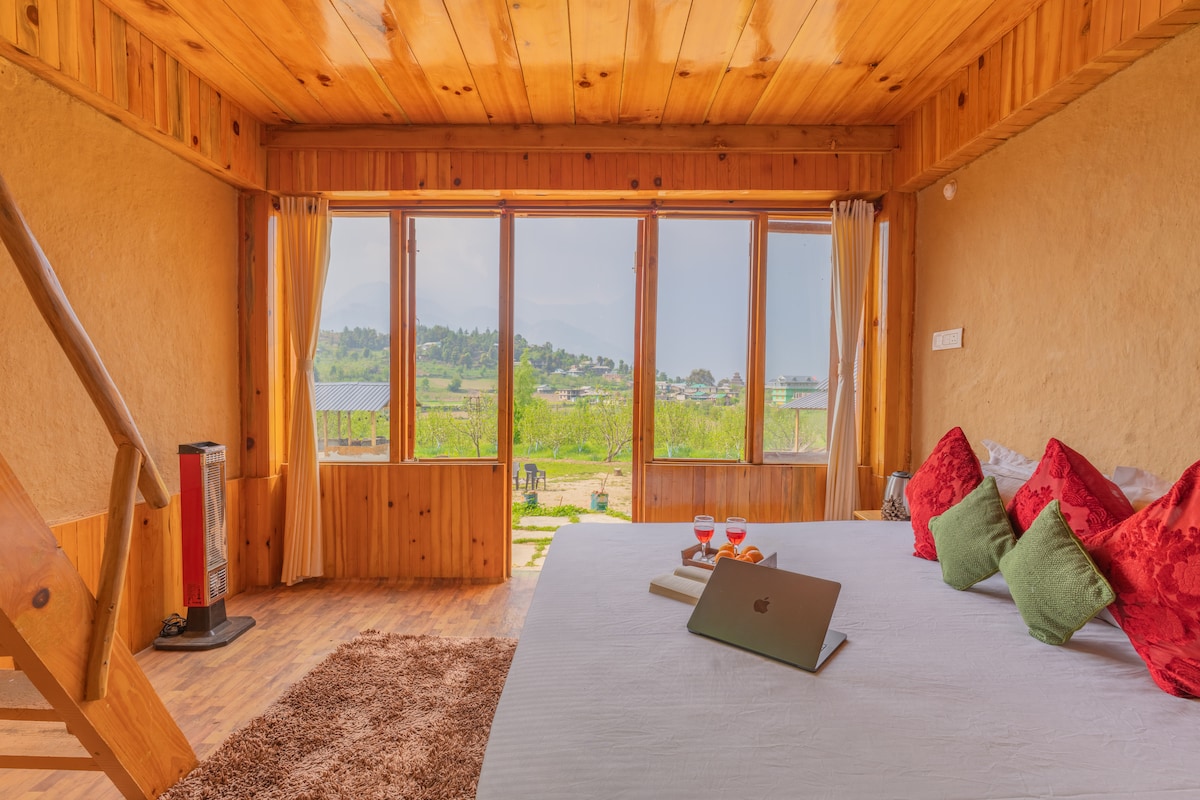 Escape to the serene Sainj Valley and unwind in our charming A Frame Duplex Cottage, nestled amidst the majestic Sainj Valley. - A spacious master bedroom with an attached washroom with modern amenities. - A secondary bedroom located upstairs, perfect for families or friends. - A balcony sit-out area, where you can bask in the breathtaking views of the Himalayas. Our cottage is situated in a peaceful location, with: - The majestic Himalayan range & explore nearby village local culture.