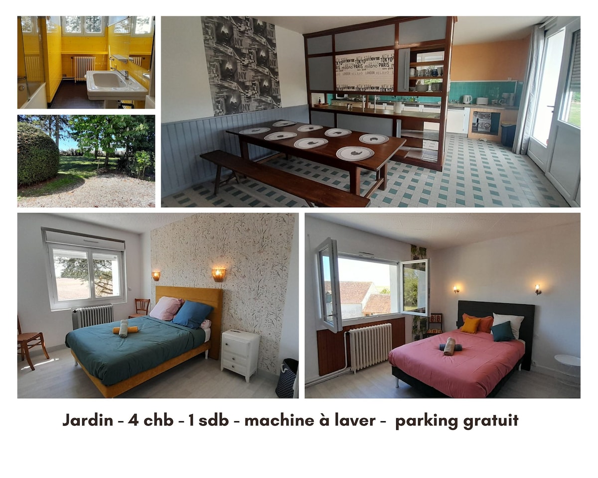 Comme à la maison ! 🏠 Profitez d’une jolie maison berrichonne toute équipée de 110m2 composée d’une chambre avec lit double et télévision, une seconde chambre avec lit d’appoint, un grand salon/salle à manger, une cuisine spacieuse, salle de douche, véranda et terrasse extérieure ! Maison située à 10 minutes à pieds du centre ville de Châteauroux, 15 minutes à pieds de Balsaneo et du parc Balsan. Idéal couple avec enfants ! N’hésitez pas à me contacter pour plus d’informations ! 🙂