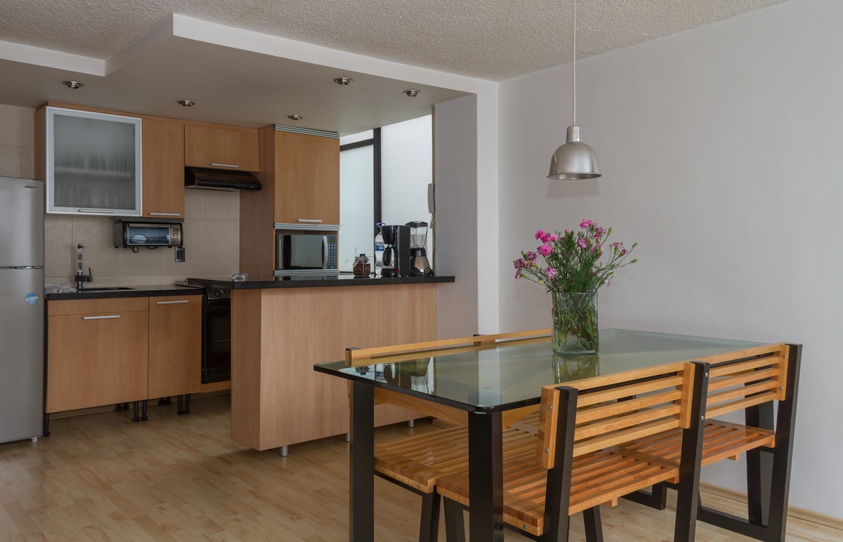 Located in the middle of the magic of la Roma. You will find a comfortable two bedroom apartment, with an open terrace in one of the most charming neighborhoods in México city, with natural light. Fully equipped kitchen and two bathrooms. Ideal for a unique and unforgettable travel experience. With 24 hour security service.