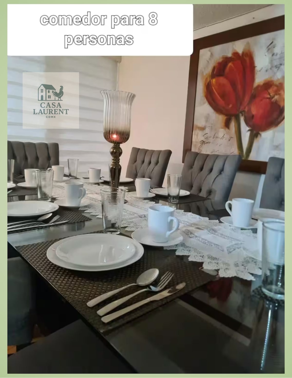 Lovely House 3 floors 6 bedrooms. Low level : Kitchen with appliances, dining room, 2 bedrooms and 1 full bathroom. Second level: 3 bedrooms and 1 full bathroom. Third level: Kitchen, large dining and living room area, 1 bedroom upstairs with a terrace an 1 full bathroom. Facilities: 2 refrigerators (1 on each kitchen), 2 WIFI modules. TV in living room with Netflix service included. Very well located in the heart of the modern Mexico City surrounded by restaurants, social venues and nice walks